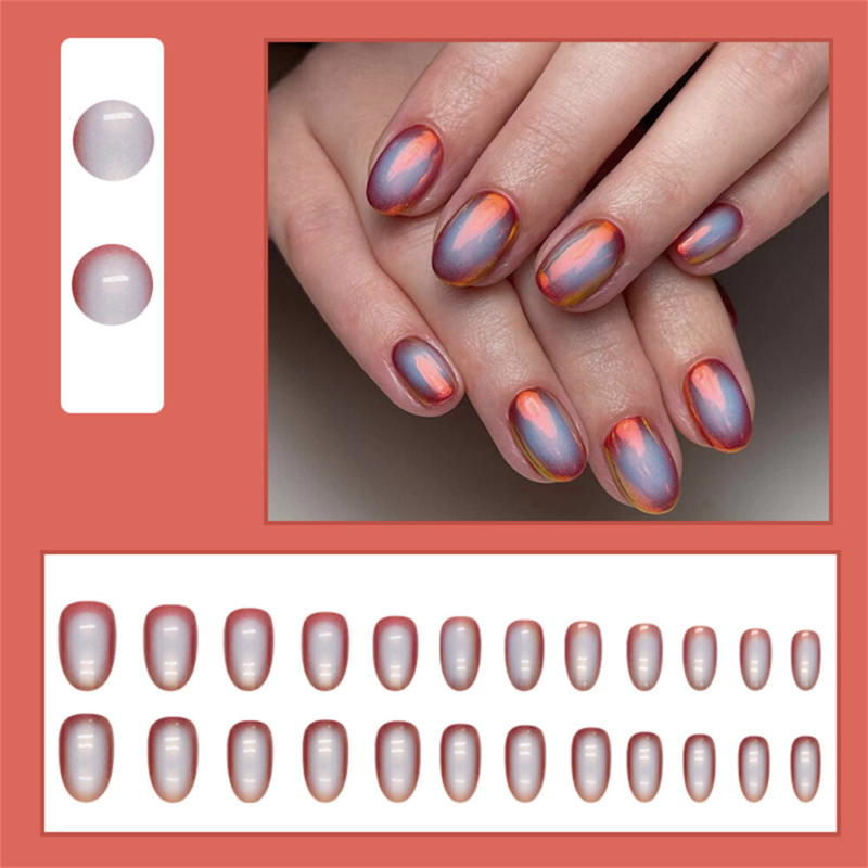 Dream Aurora Autumn False Nail Almond Short Press on Nails for Nail Art 24pcs