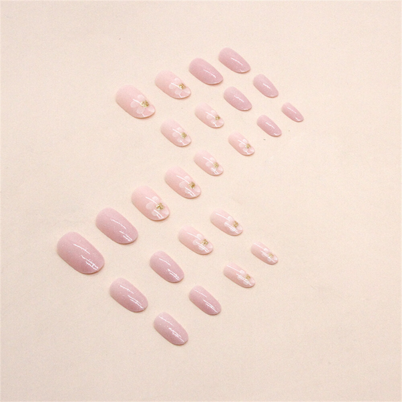 Dream Glitter Pink False Nail Almond Short Press on Nails for Nail Art 24pcs