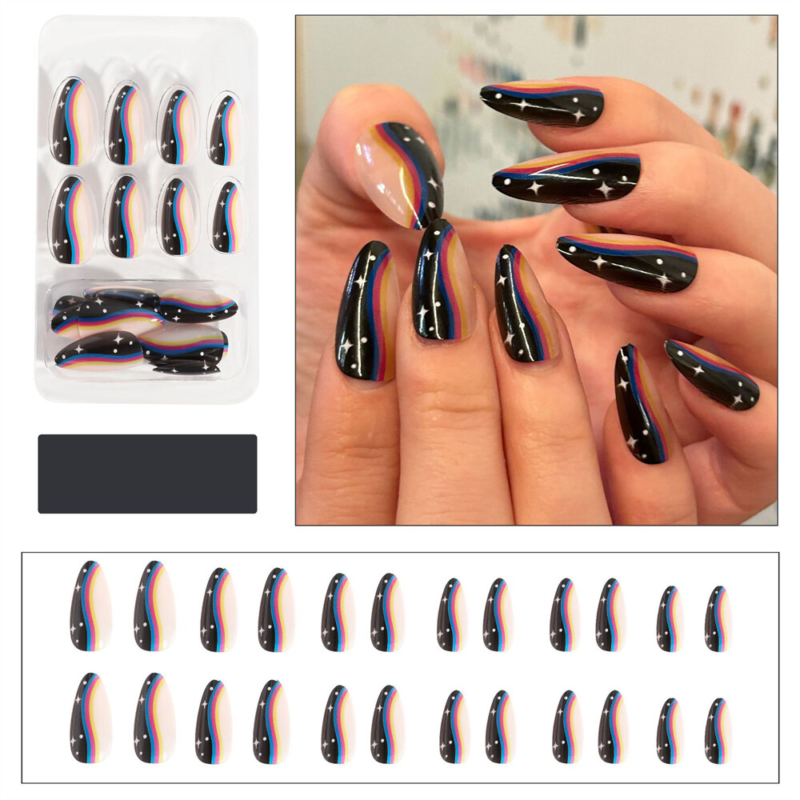 Dream Stars False Nail Short Almond Glossy Press on Nails for Nail Art 24pcs