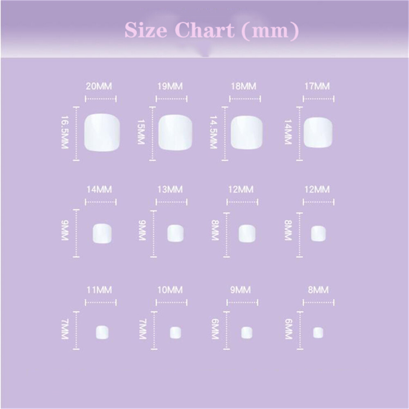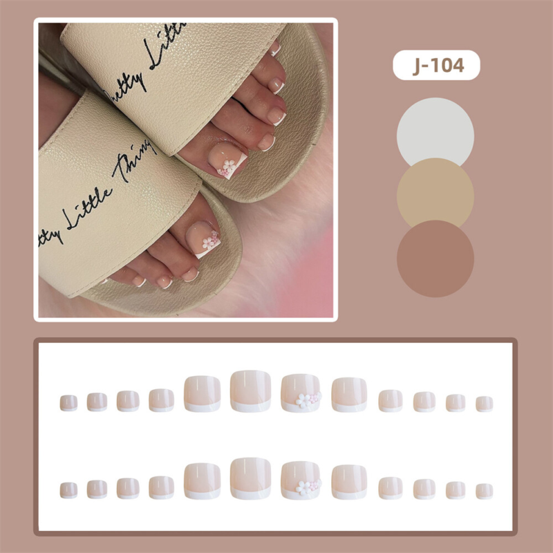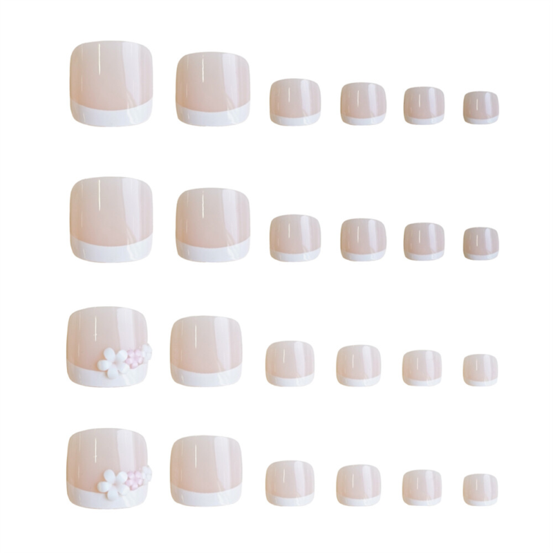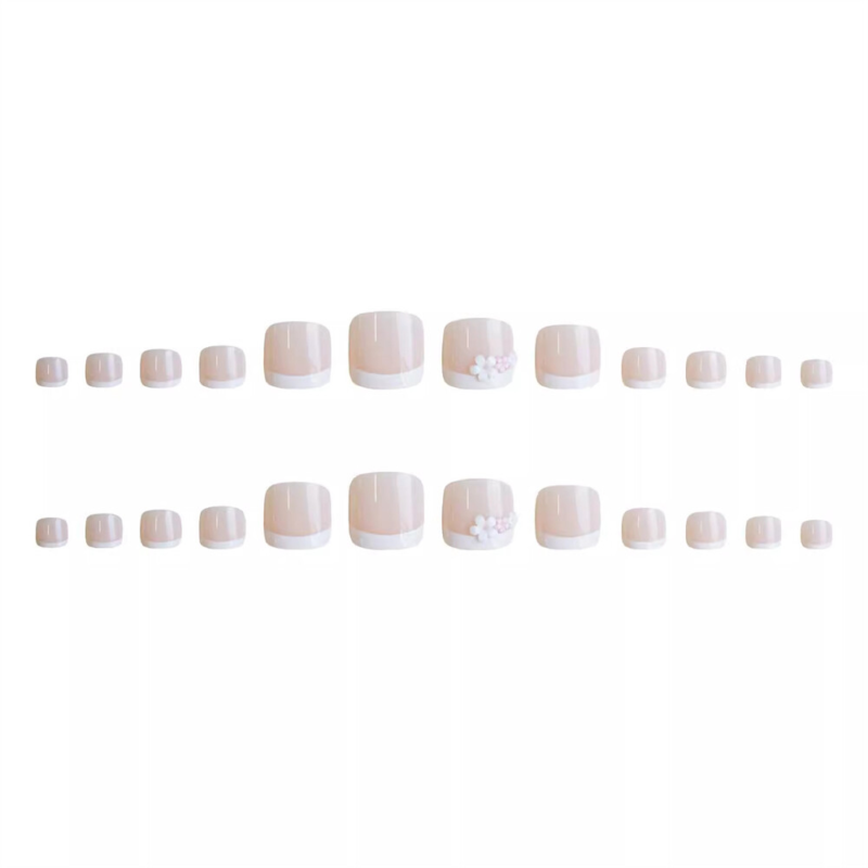 Fashionable Short Toe Press-On False Nail Elegant Flowers French Pedicure 24pcs