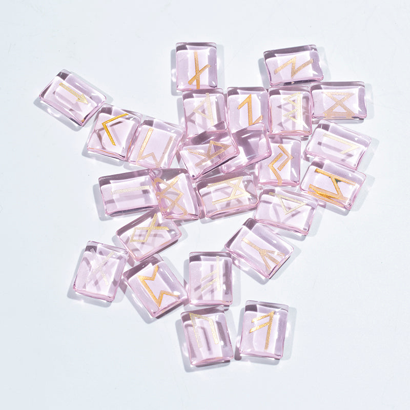 Fengshui decoration pink rose glass engraved divination stone rune stone set