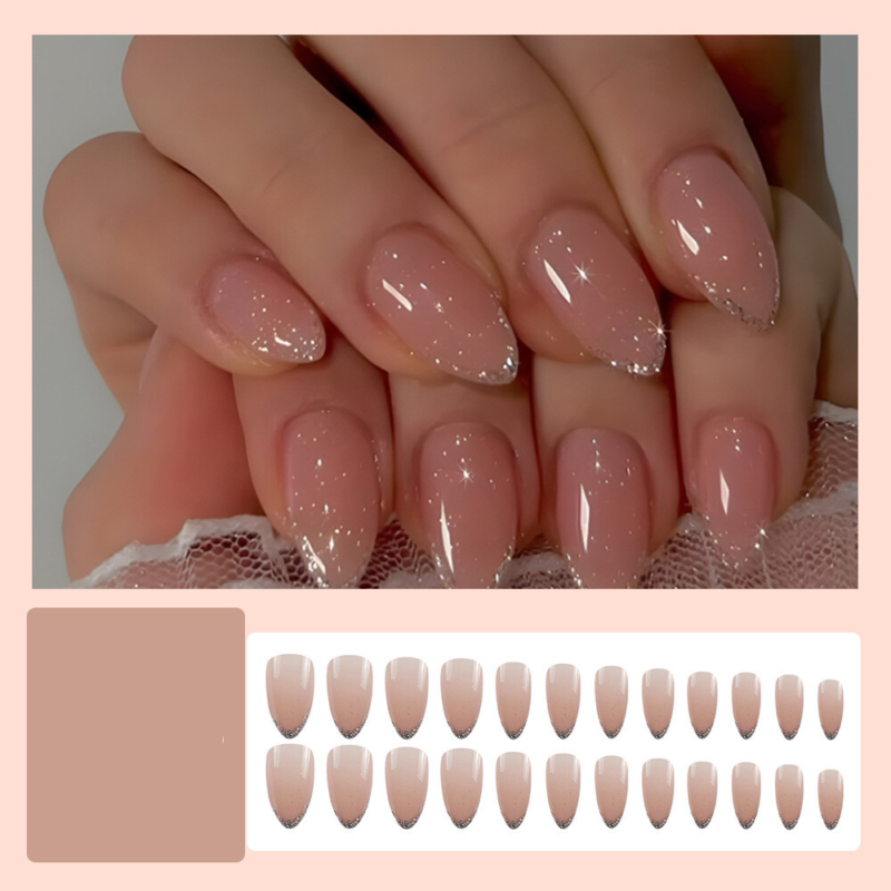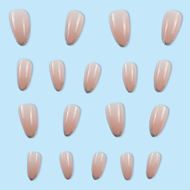 French Glitter Gradient Fake Nail Short Almond Press on Nails for Nail Art 24pcs