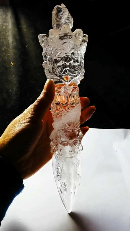 Giant Tibetan High Altitude Clear Quartz Crystal Amulet Dorje Vajra Phuba 10.2''