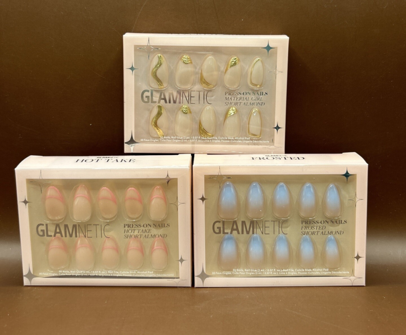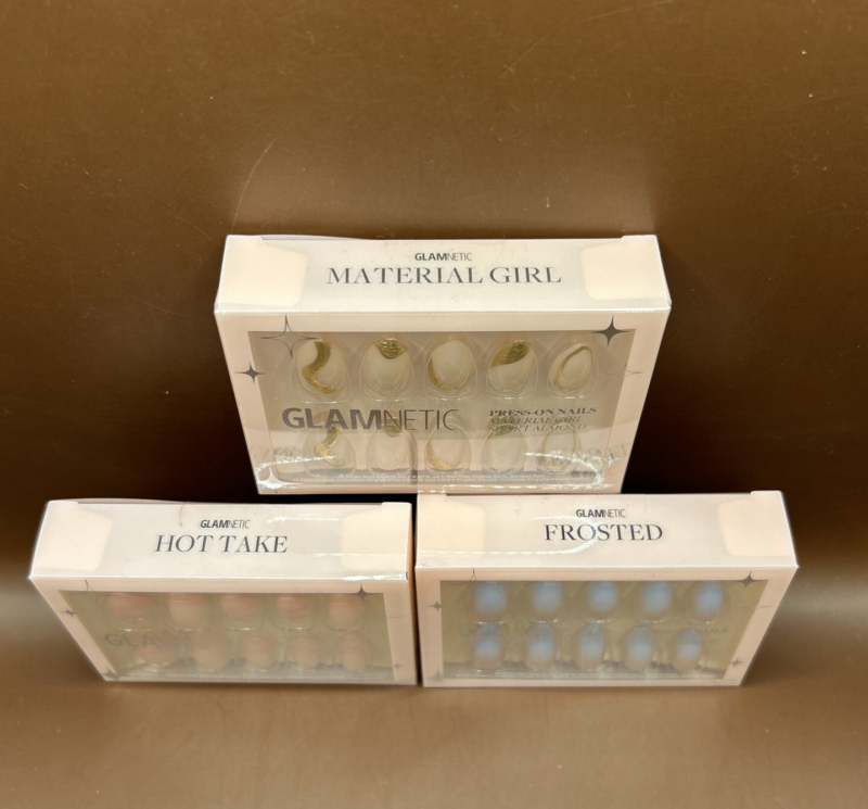 Glamnetic Press-On Short Almond Nails: Hot Take, Material Girl, Frosted New