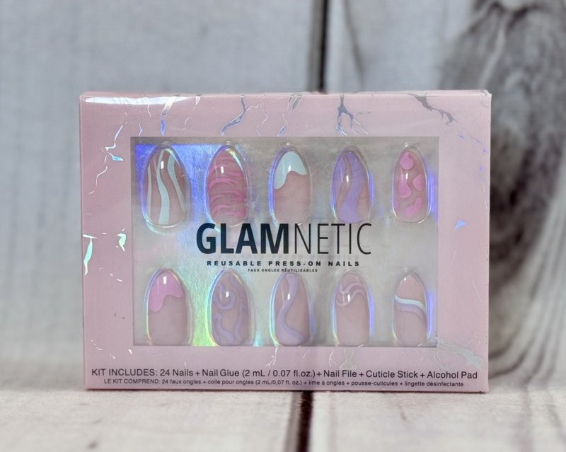 Glamnetic Reusable Press-On Nails Medium Almond "WILD CARD" 30 Nail Set w/Glue
