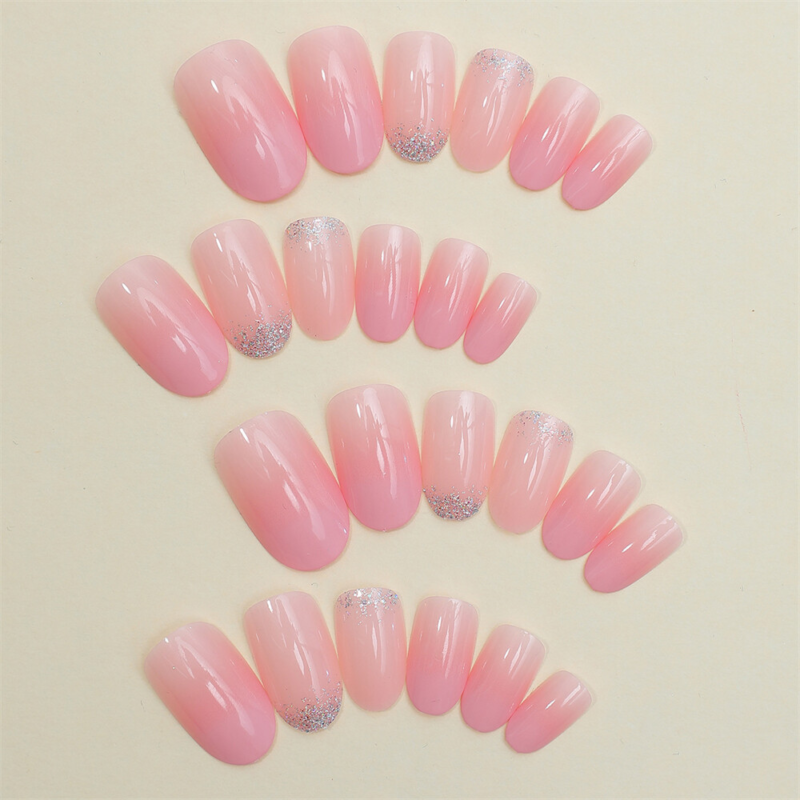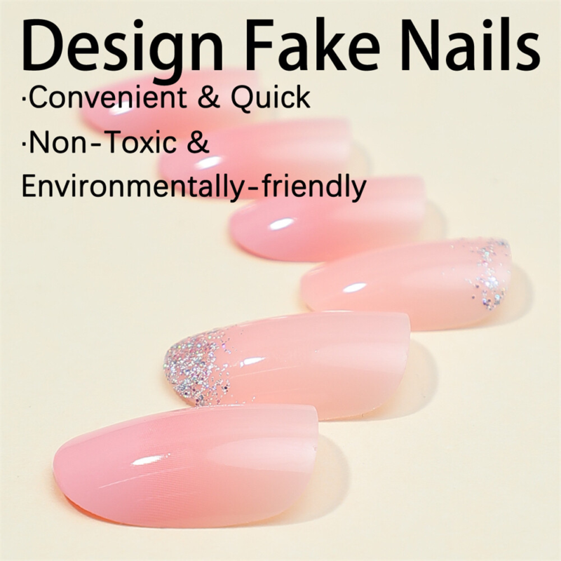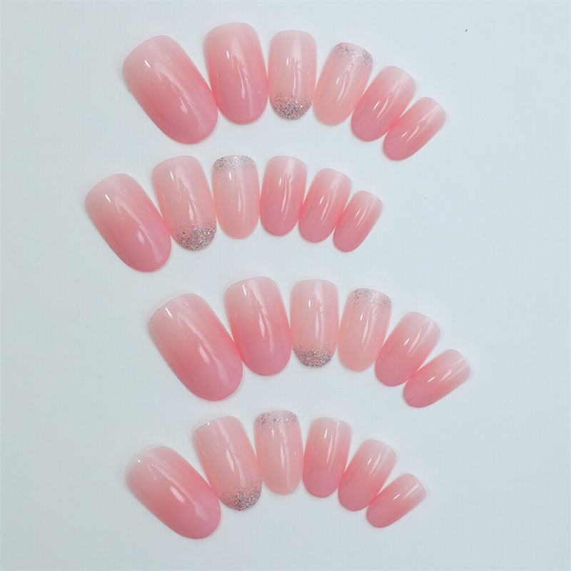 Glitter Gradient Pink False Nail Short Almond Press on Nails for Nail Art 24pcs