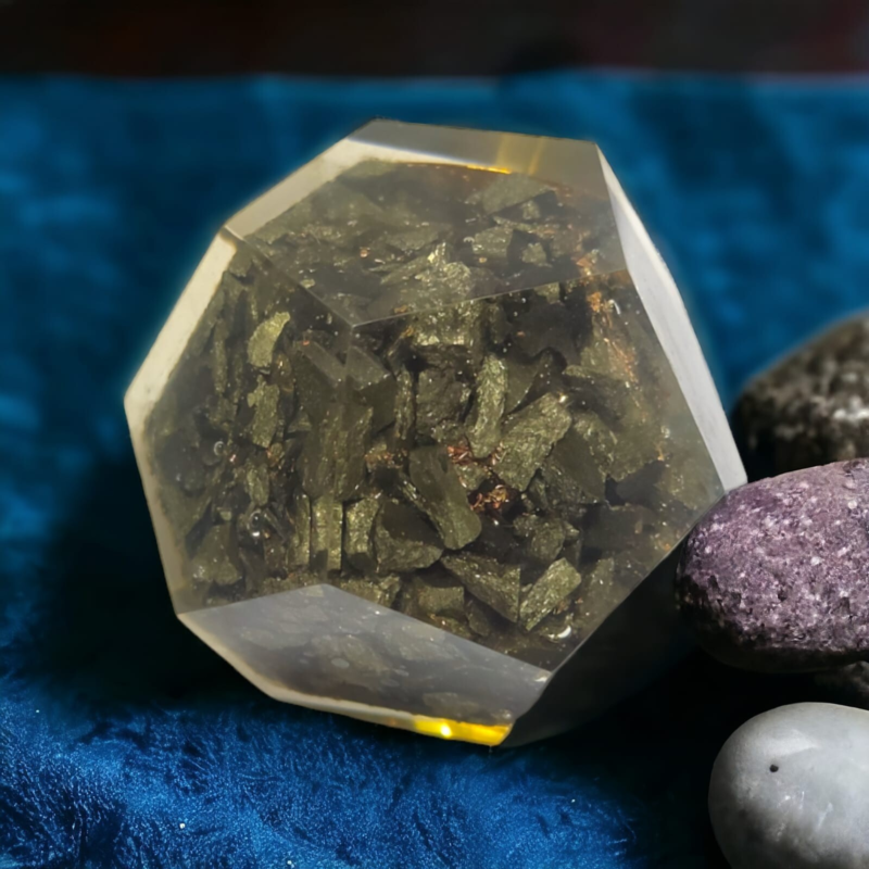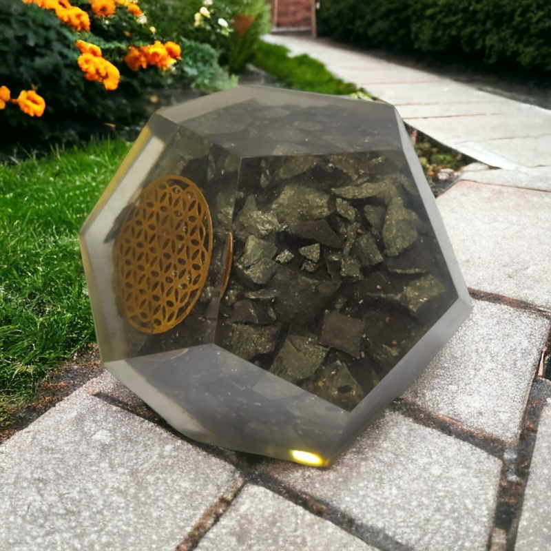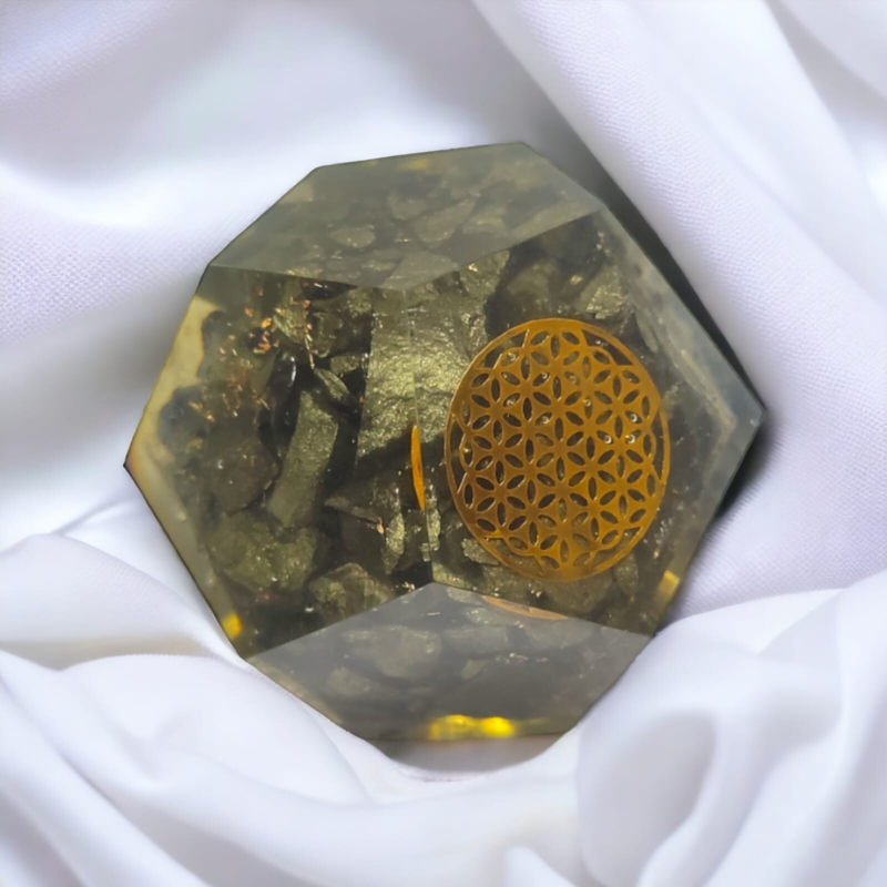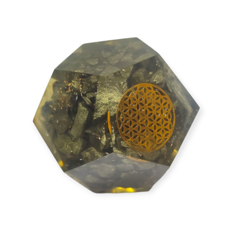 Golden Pyrite Orgonite Dodecahedron Crystal Flower Of Life Healing 40-45MM