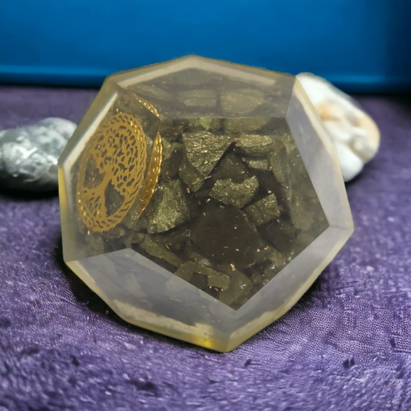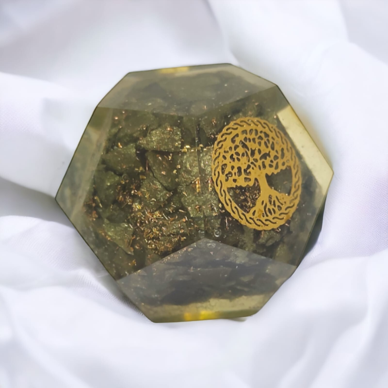 Golden Pyrite Orgonite Dodecahedron Crystal Tree Of Life Healing 40-45MM