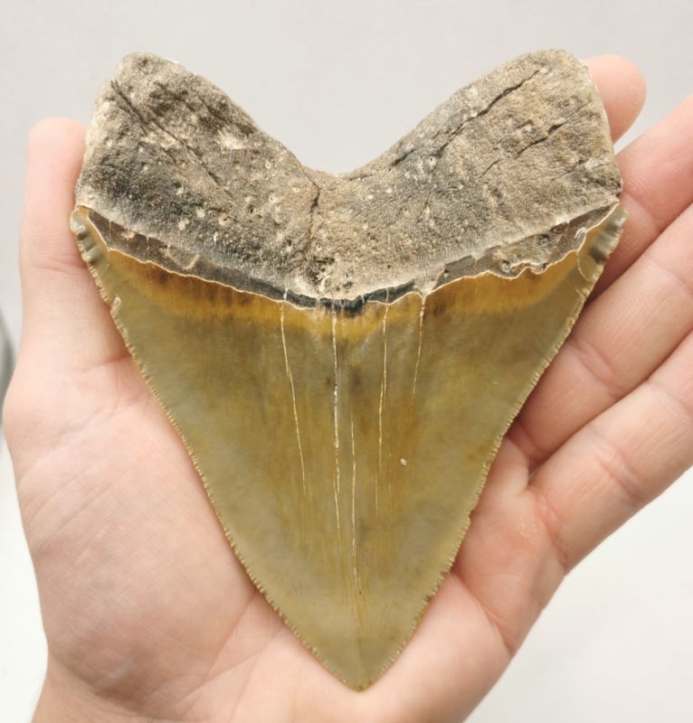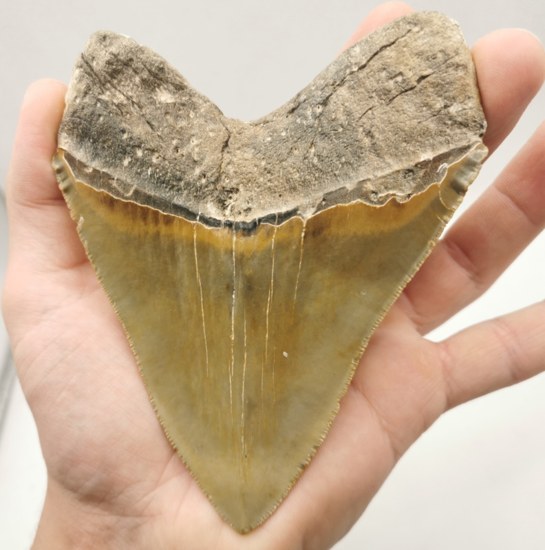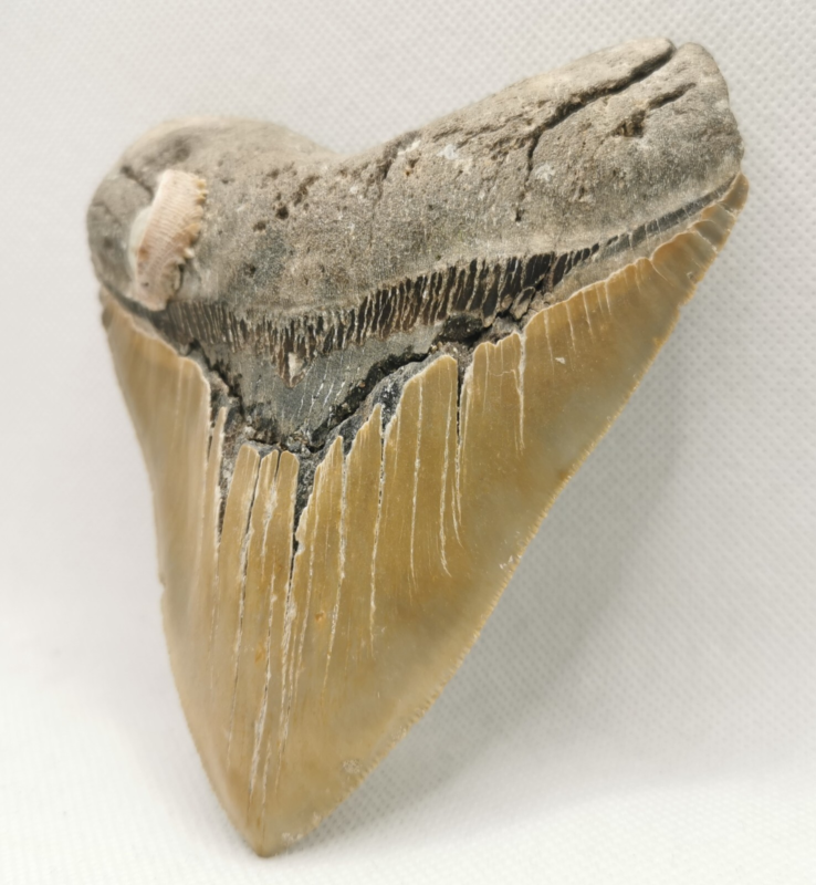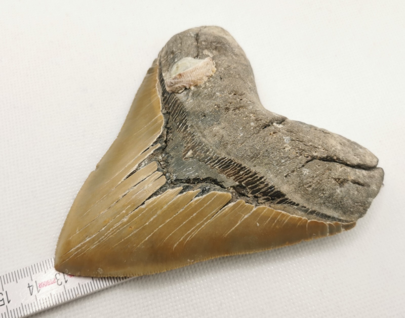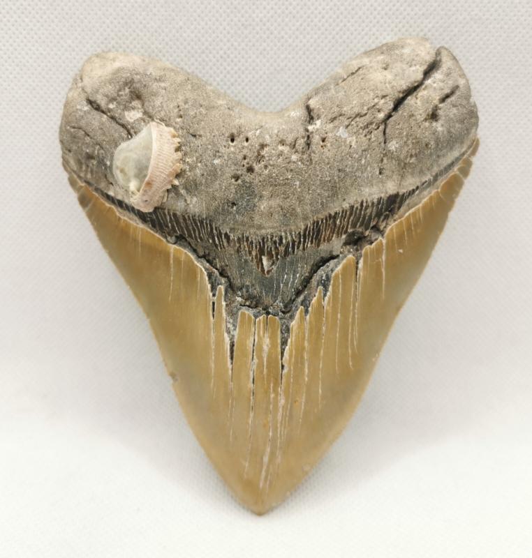 Großer und schöner Megalodon Haizahn mit Muschel ! Hai Zahn Fossil USA