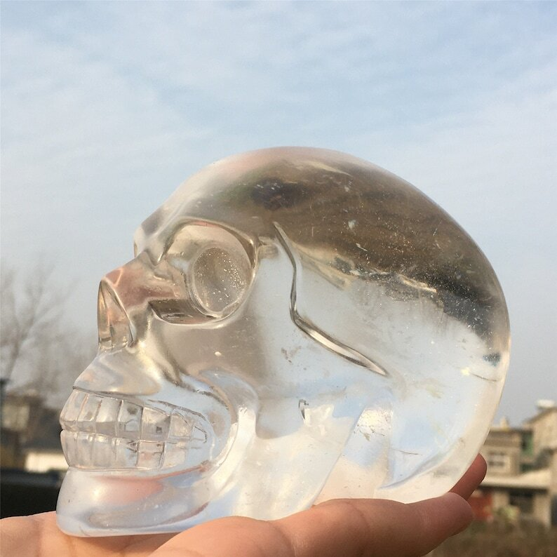 Hand carved Clear Melting stone Crystal Skull Reiki Heal Mineral Samples 1PC