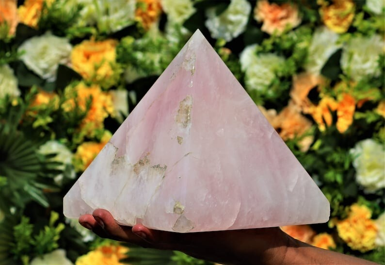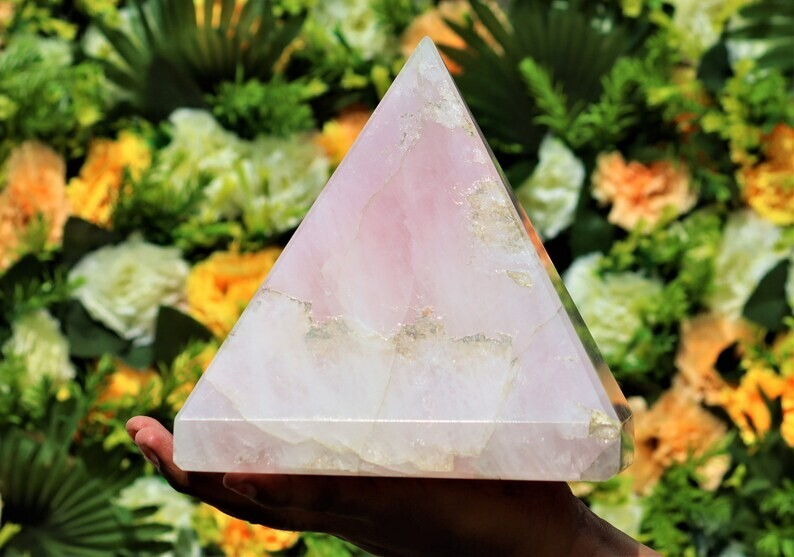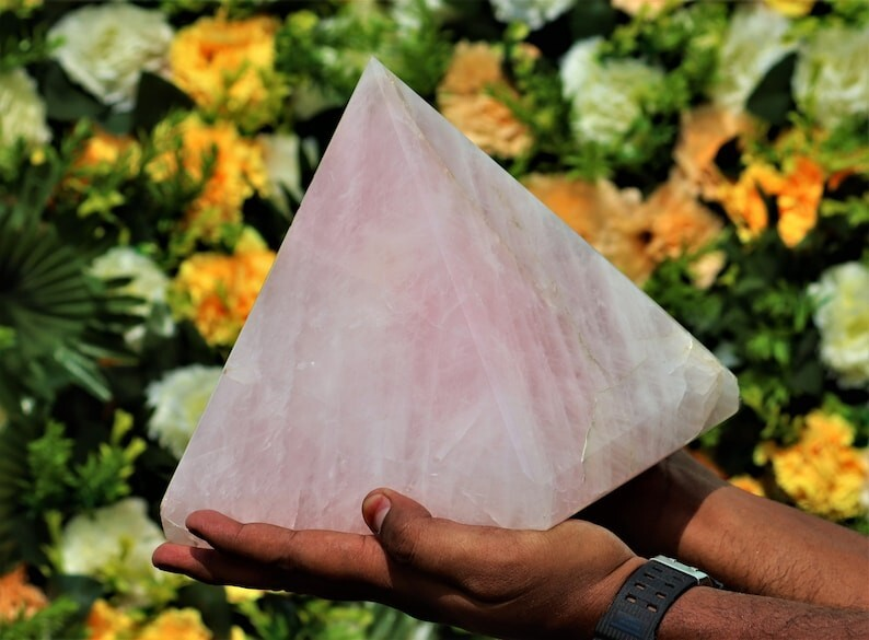 Huge 185MM Natural Rose Quartz Natural Healing Metaphysical Chakra Pyramid Point
