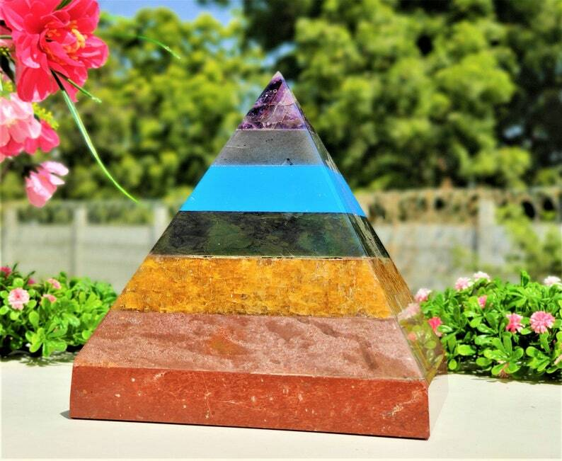 Large 180MM Seven Chakra Pyramid for Energy Balance And Healing 7 Seven Chakra