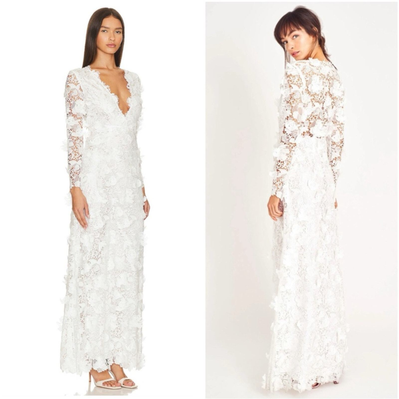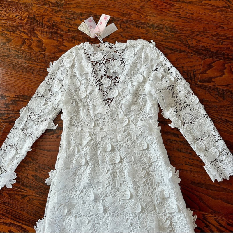 LoveShackFancy Bridal Sylvester Lace Guipure Plunge V Wedding Gown Size 14 NWT