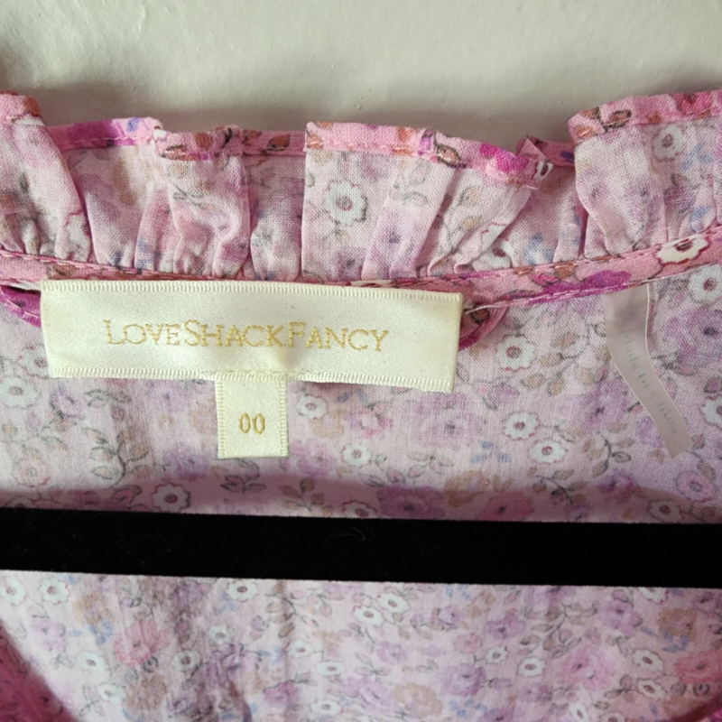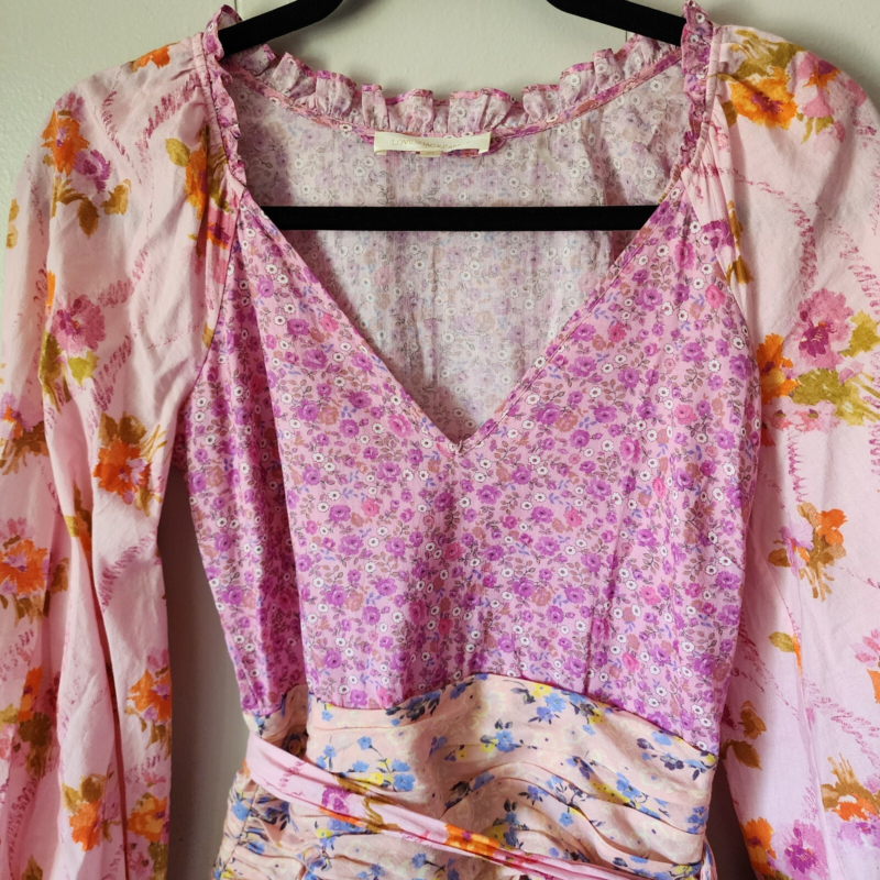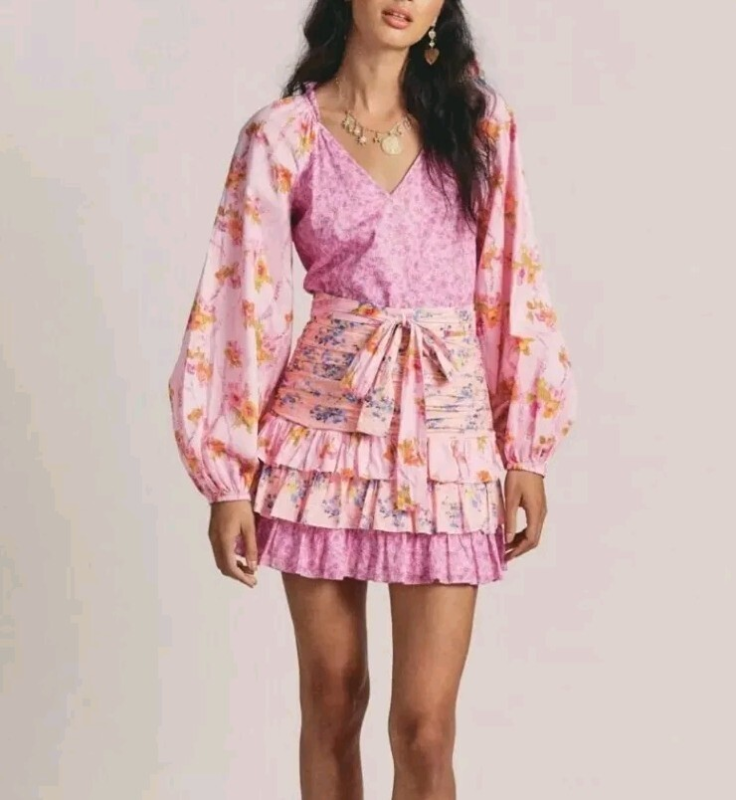 LOVESHACKFANCY Rina Floral Print Ruffled Mini Dress, Exploded Pink Size 00