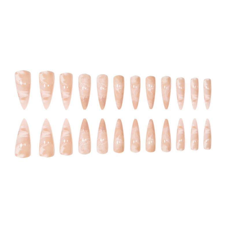 Marbling Blooming False Nail Nude Color Sharp Press on Nails for Nail Art 24pcs