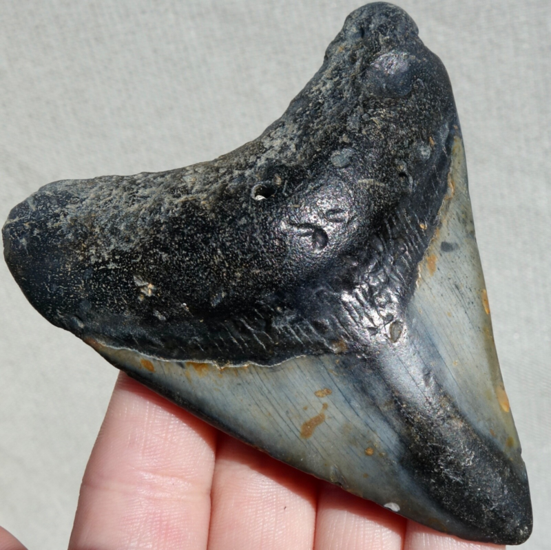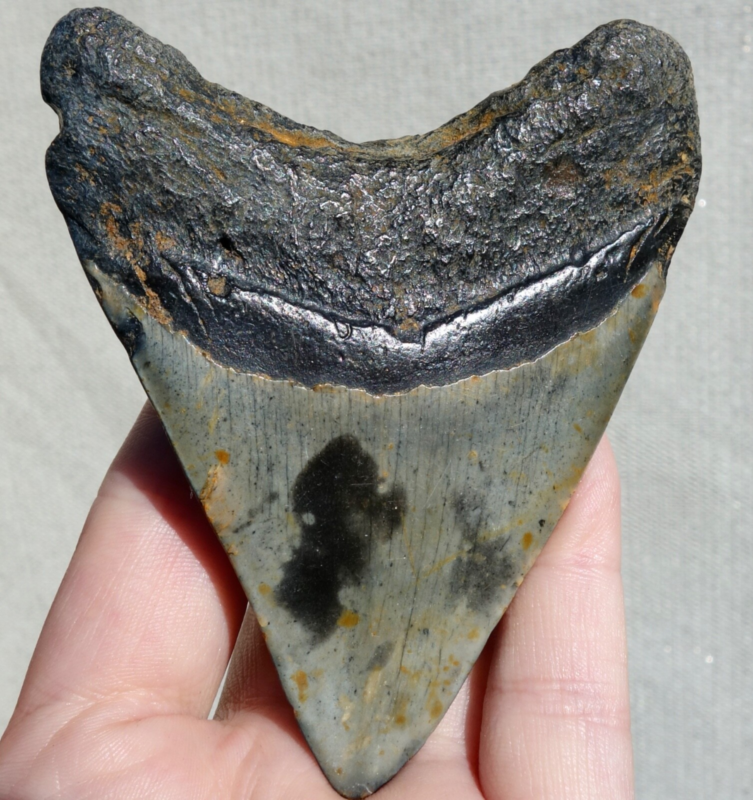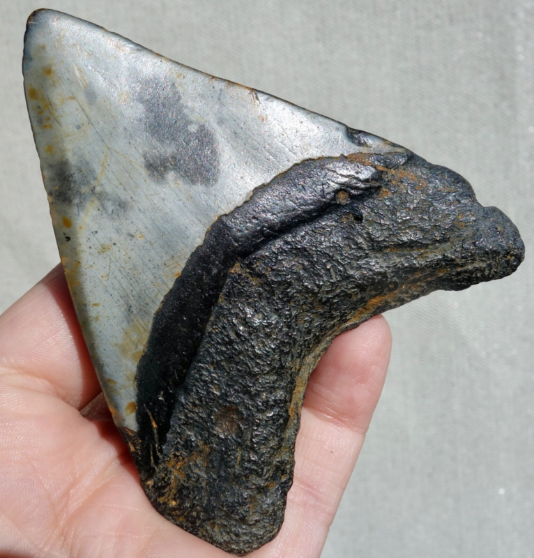 This is a nice fossilized Megalodon tooth, a Megalodon being a shark that has been extinct for around 3.6 million years.