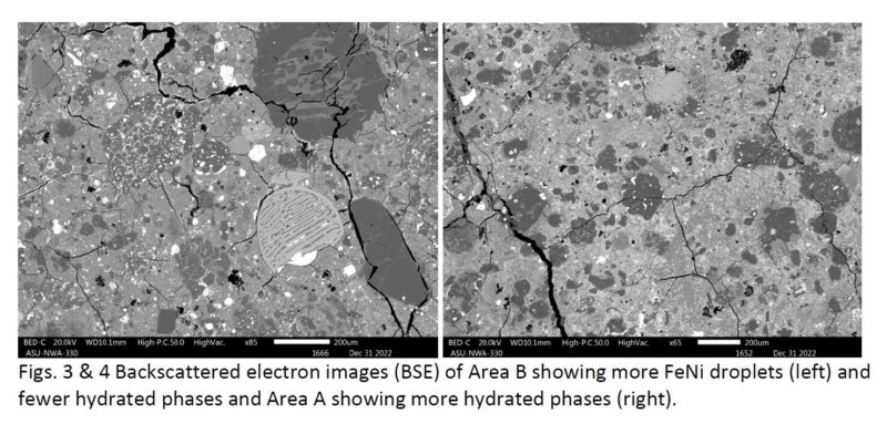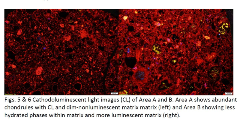 phyllosilicates. Chondrite components in some regions (Area A) are surrounded by dust