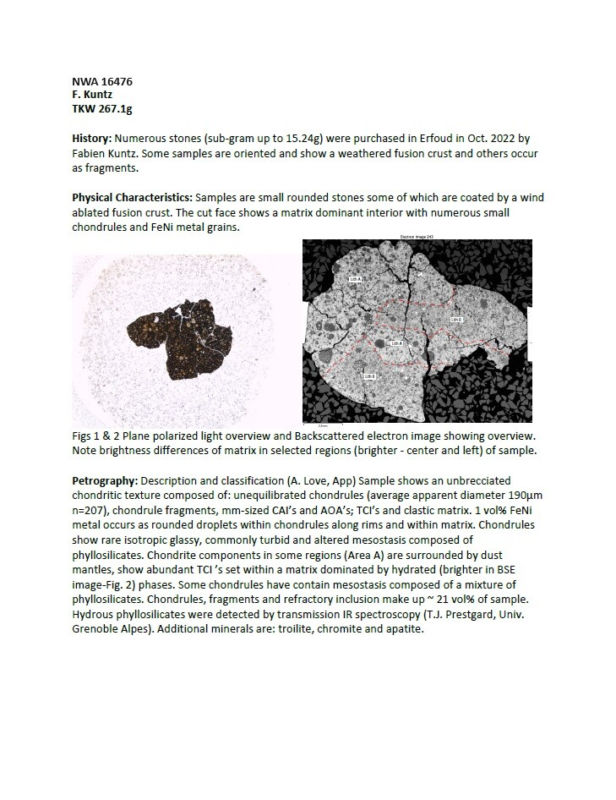 n=207), chondrule fragments, mm-sized CAI’s and AOA’s; TCI’s and clastic matrix. 1 vol% FeNi