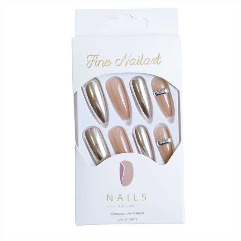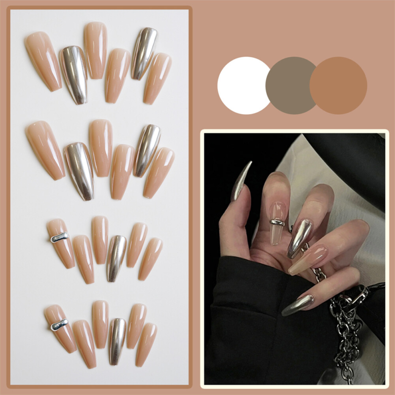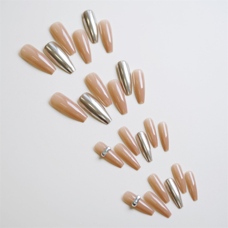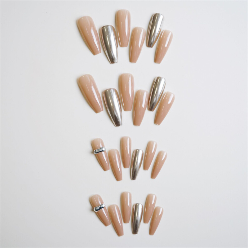Mirror Nude Color Fake Nail Long Coffin Tips Press on Nails for Nail Art 24pcs