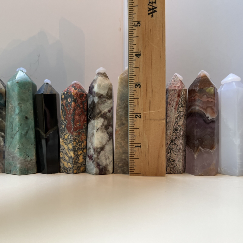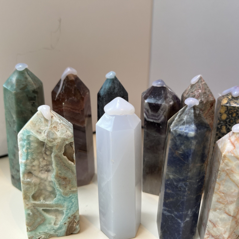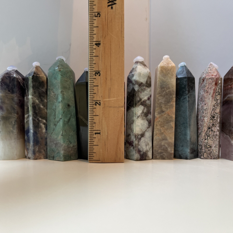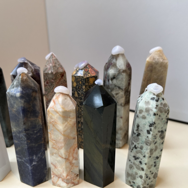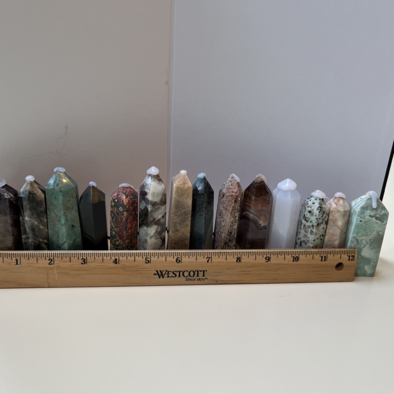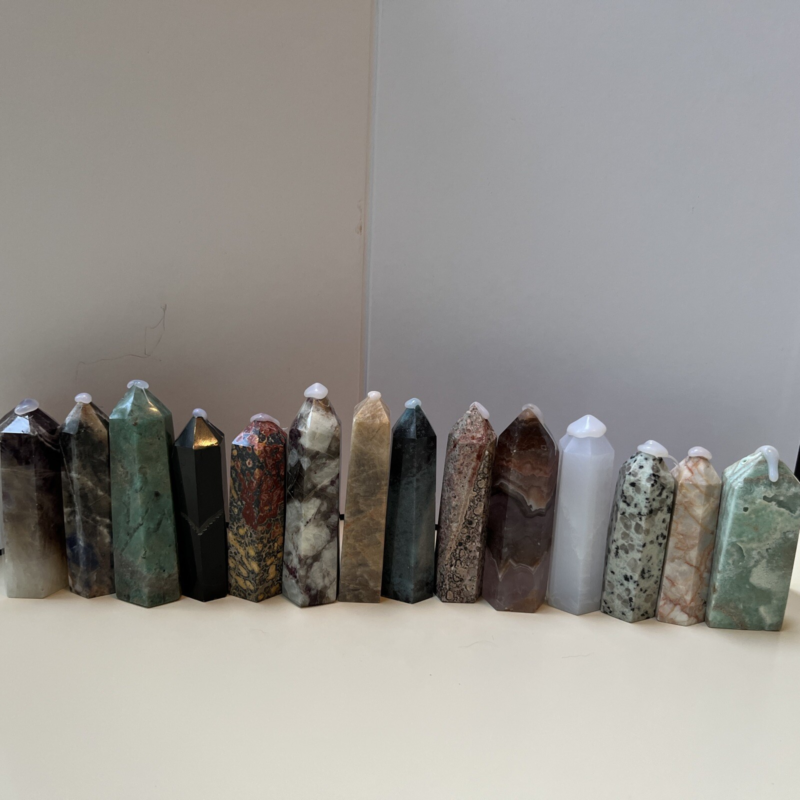 Beautiful mix of materials. Total weight 2 pounds 11.1 ounce. There are 14 total towers. I combine shipping. Upon request, I will list all the different materials.