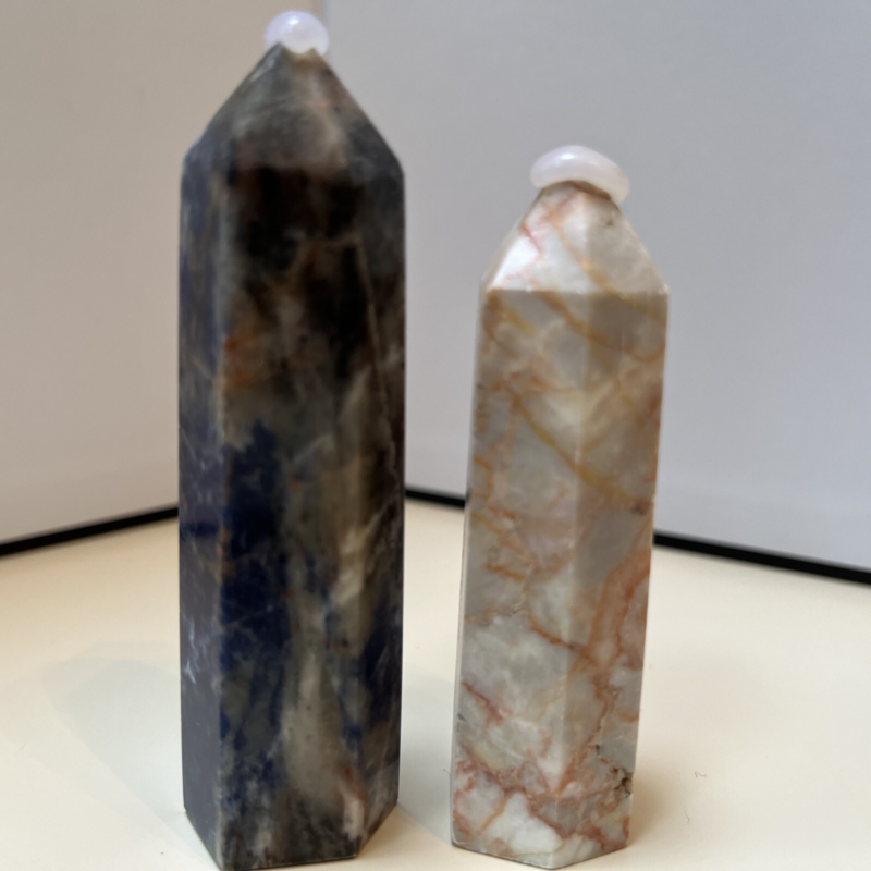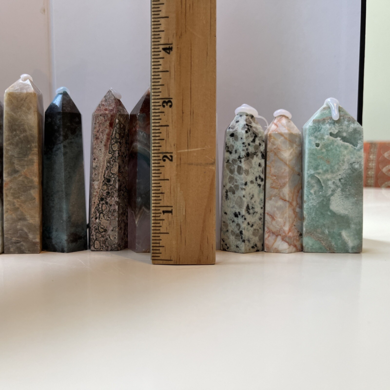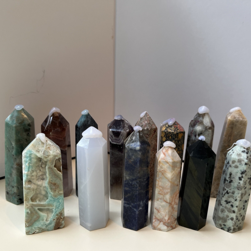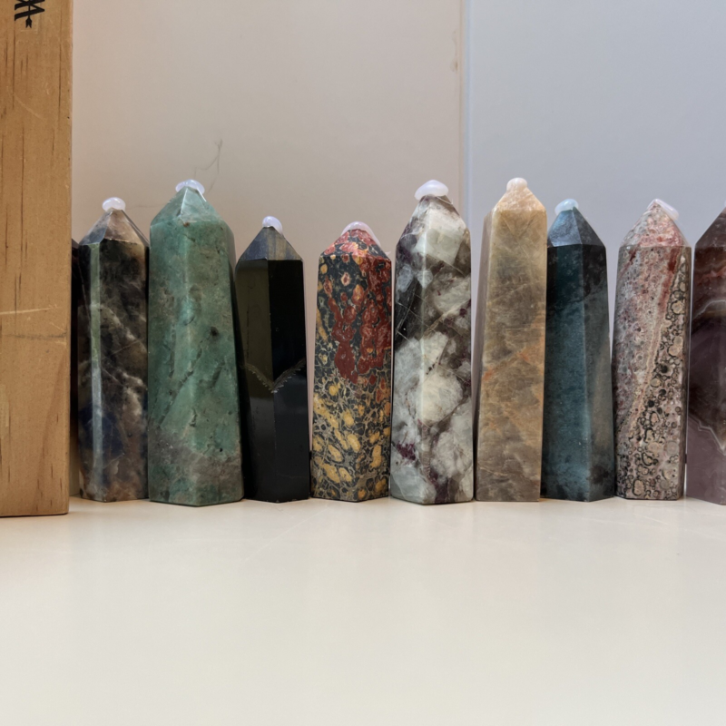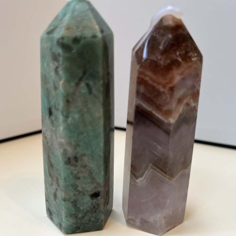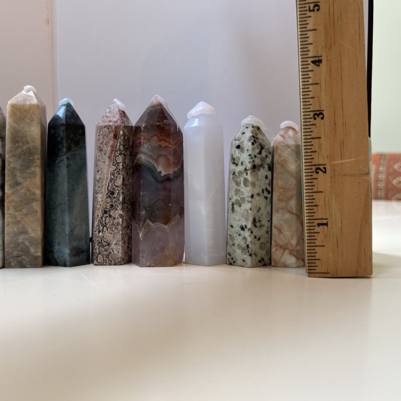 Beautiful mix of materials. Total weight 2 pounds 11.1 ounce. There are 14 total towers. I combine shipping. Upon request, I will list all the different materials.