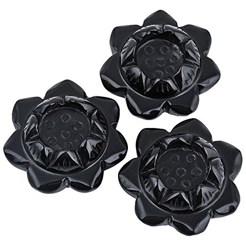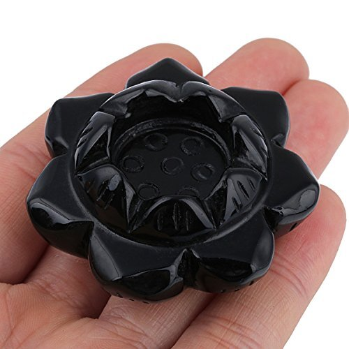 mookaitedecor Black Obsidian Carved Gemstone Lotus Flower Crystal Ball Stand/Candlestick Holder