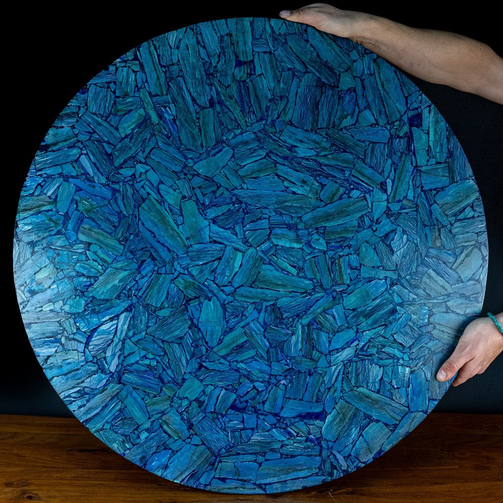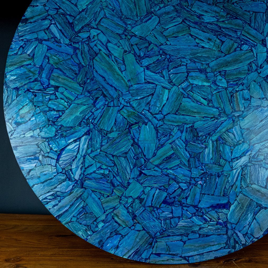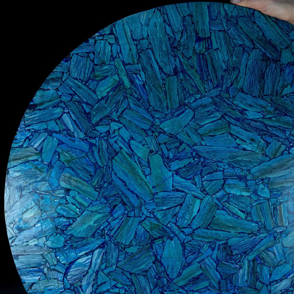Eine seltene und wunderschöne Azurit-Tischplatte (Mosaik) mit Mustern und Adern in Blautönen bis über grüne Verflechtungen des Malachits, Wegen und anderen Formen, die jedes Auge entsprechend seiner Empfindlichkeit finden kann.