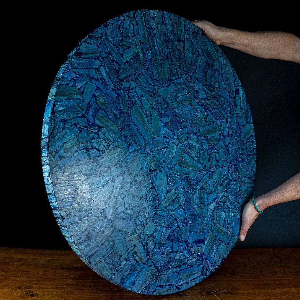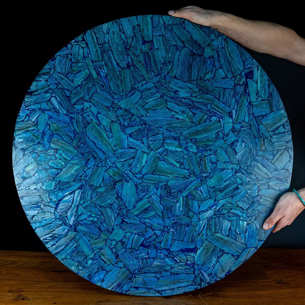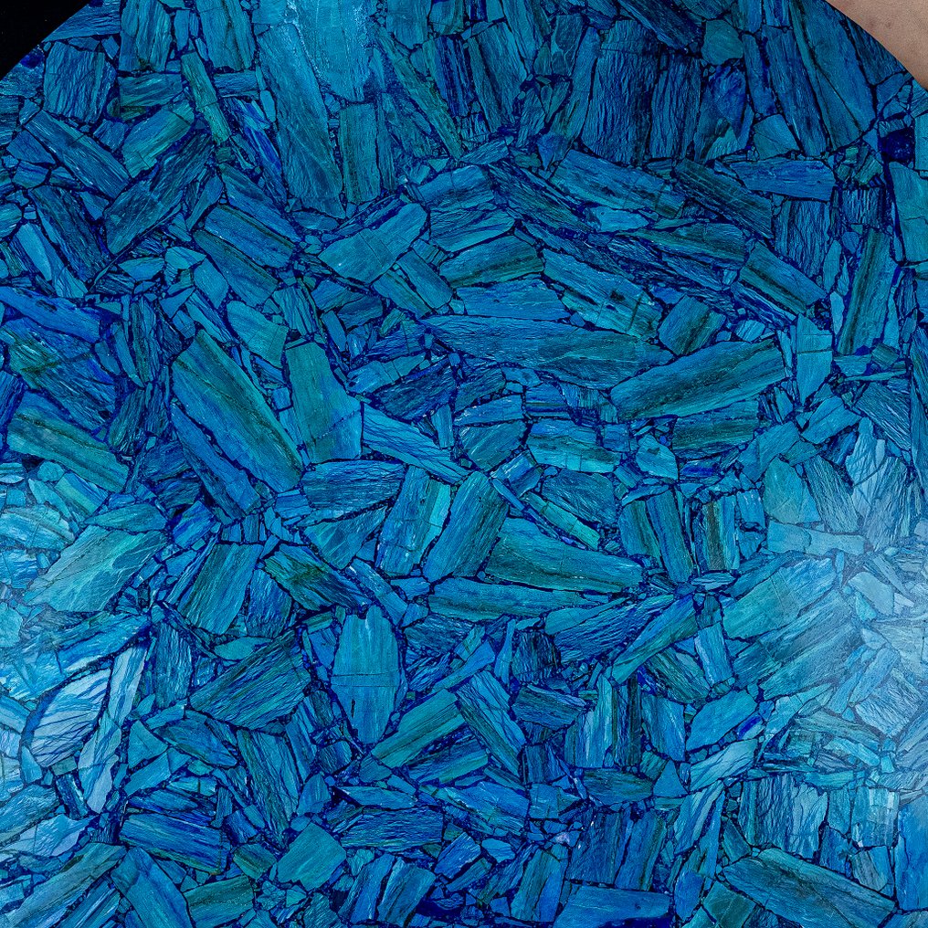 Eine seltene und wunderschöne Azurit-Tischplatte (Mosaik) mit Mustern und Adern in Blautönen bis über grüne Verflechtungen des Malachits, Wegen und anderen Formen, die jedes Auge entsprechend seiner Empfindlichkeit finden kann.