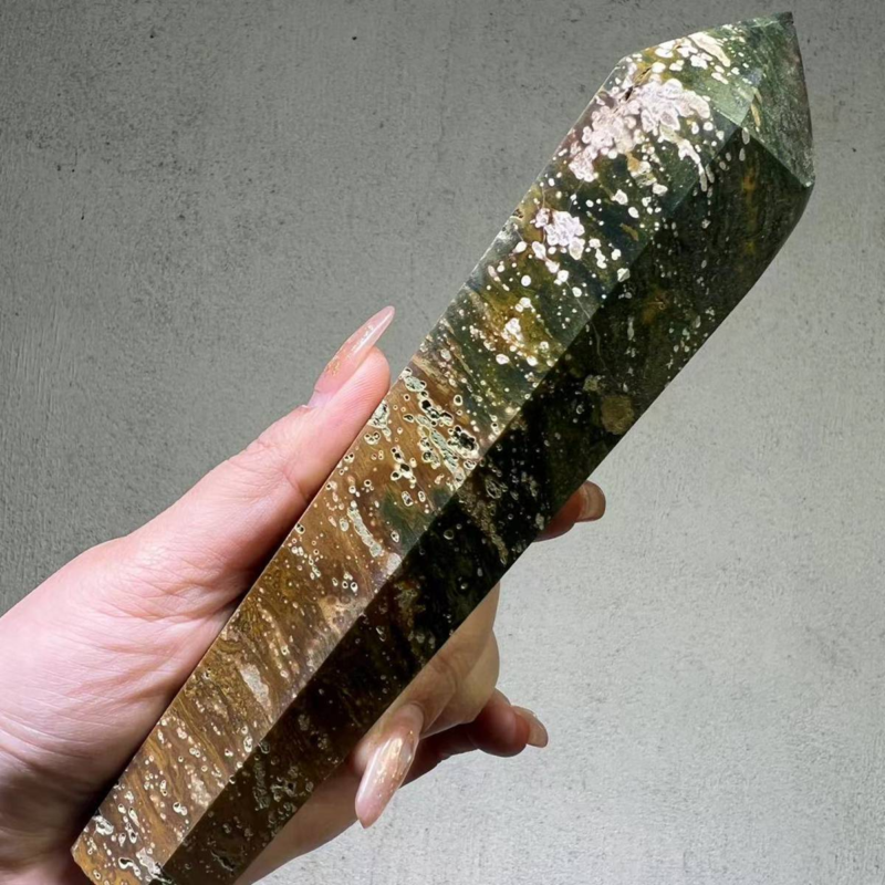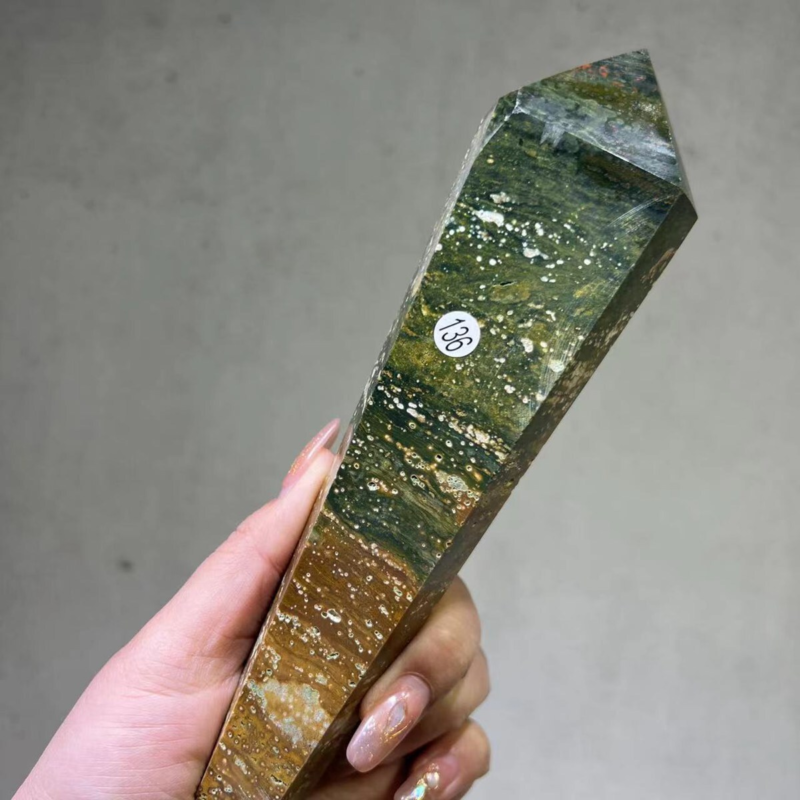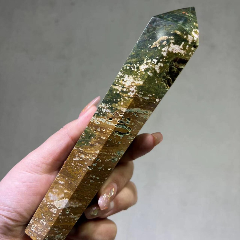 Natuar Ocean Jasper Crystal Obelisk Point Wand Stone Quartz Healing