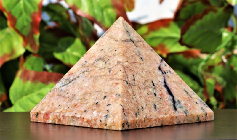 Natural 17.5CM Orange Sunstone Meditation Spirit Aura Chakra Energy Pyramid