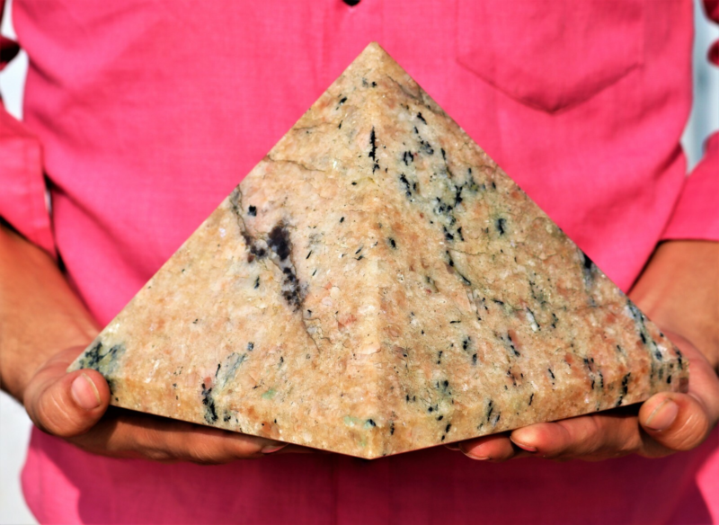 Natural 17.5CM Orange Sunstone Meditation Spirit Aura Chakra Energy Pyramid