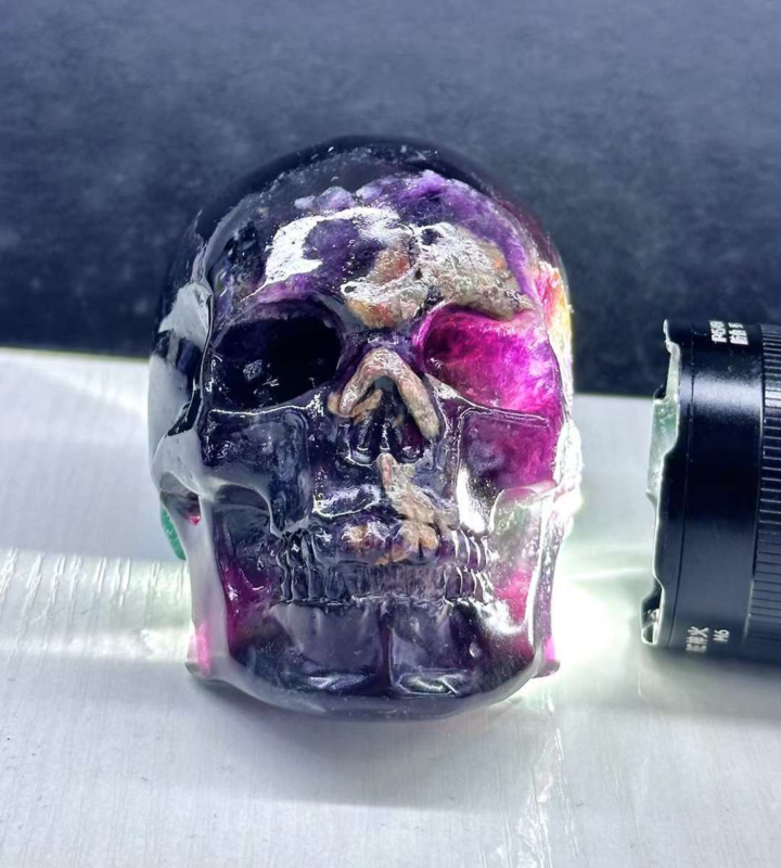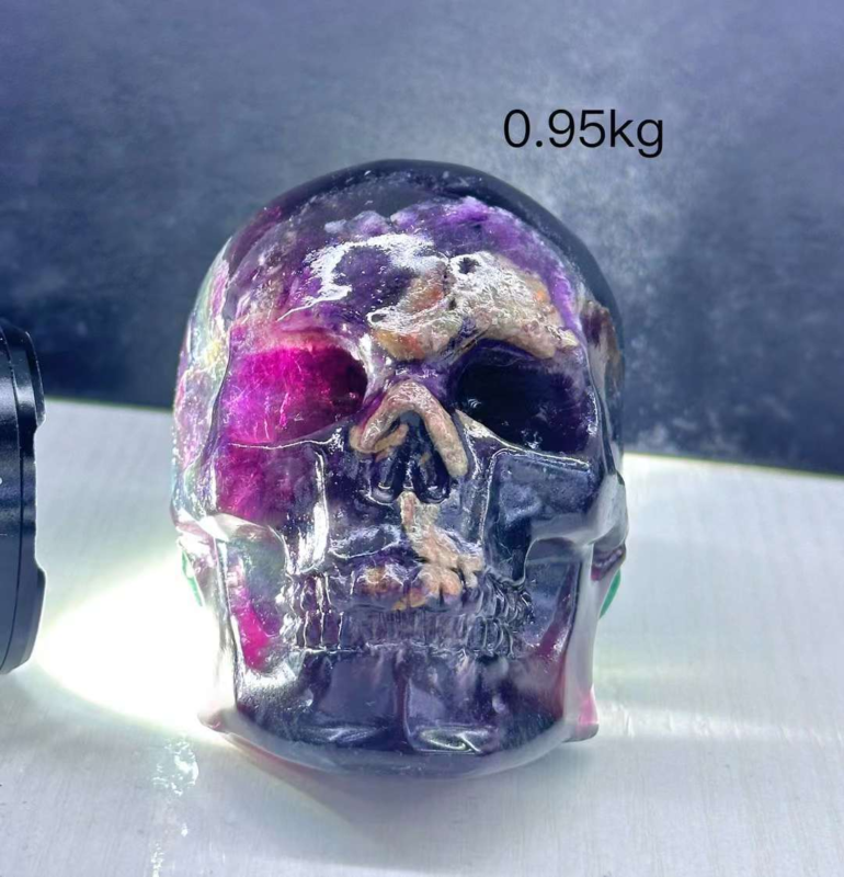 Natural Big skull of colorful fluorite quartz crystal Random 1PC