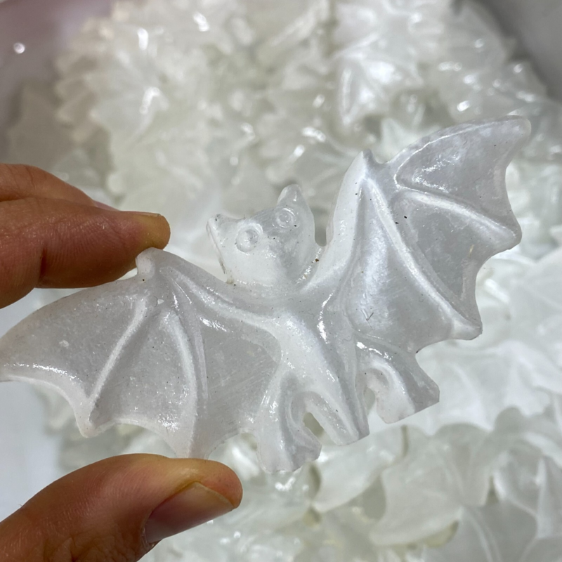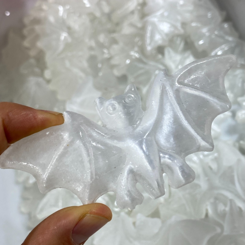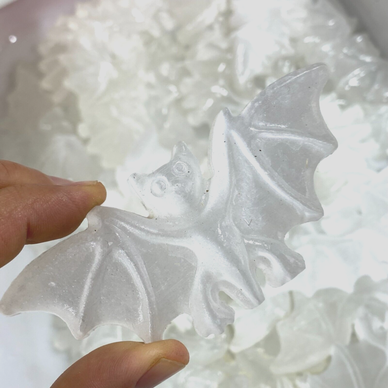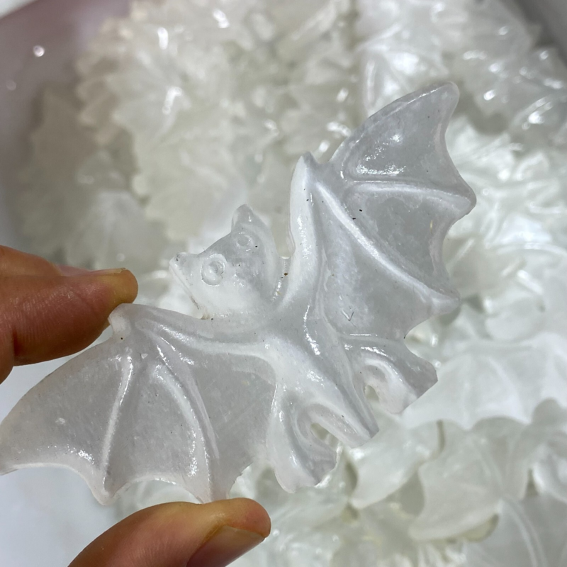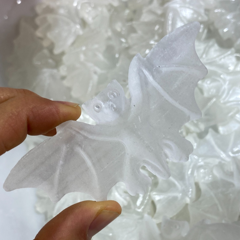 Natural Gypsum Selenite bat Hand Carved Quartz Crystal Reiki healing 1PC