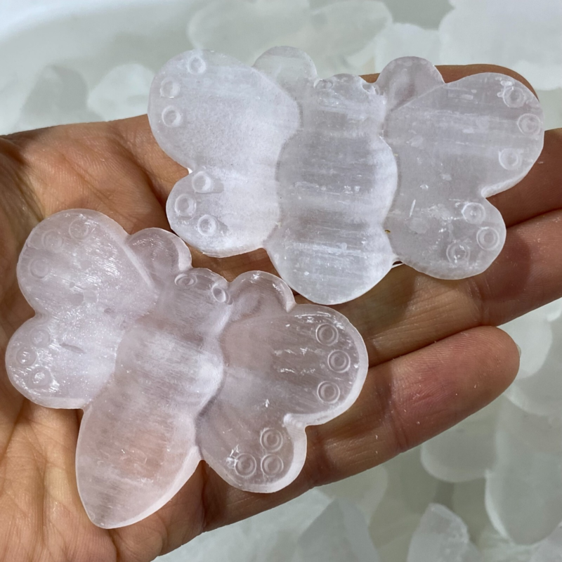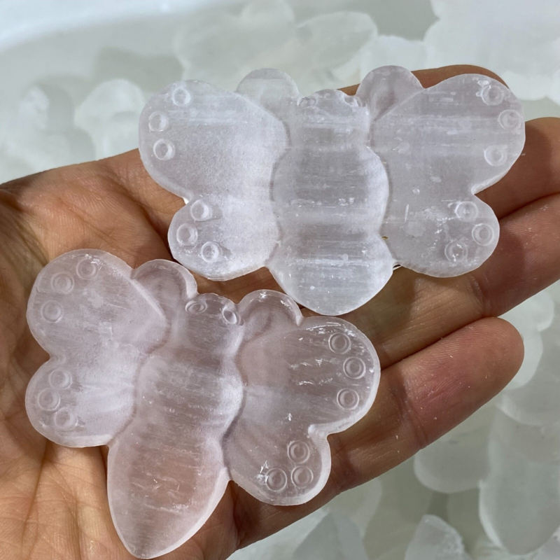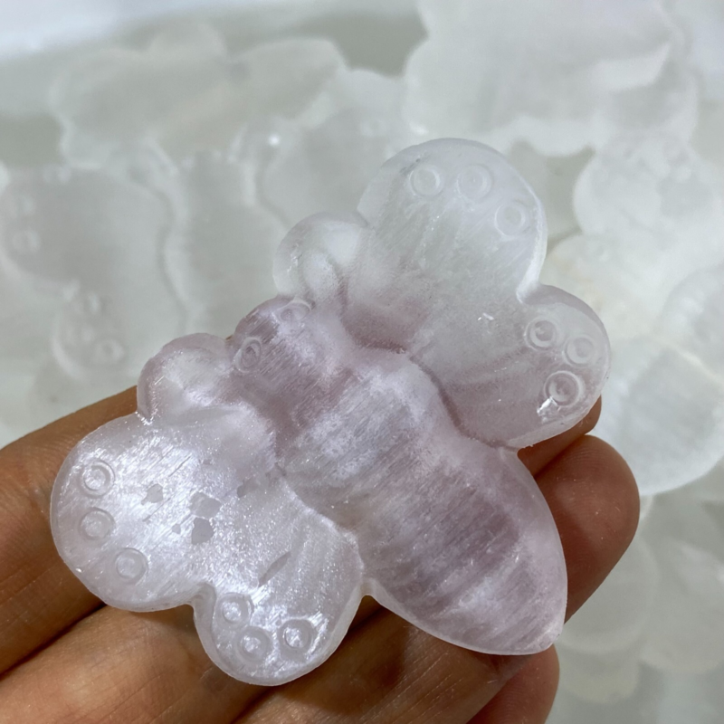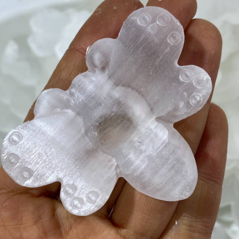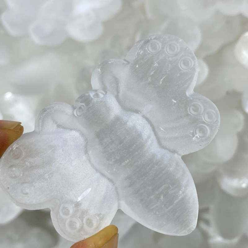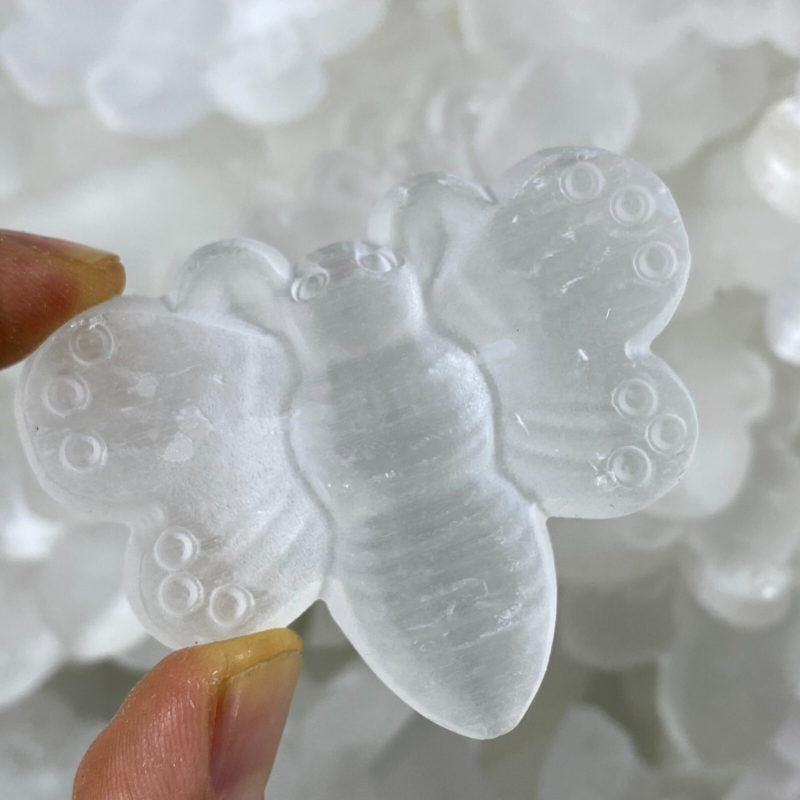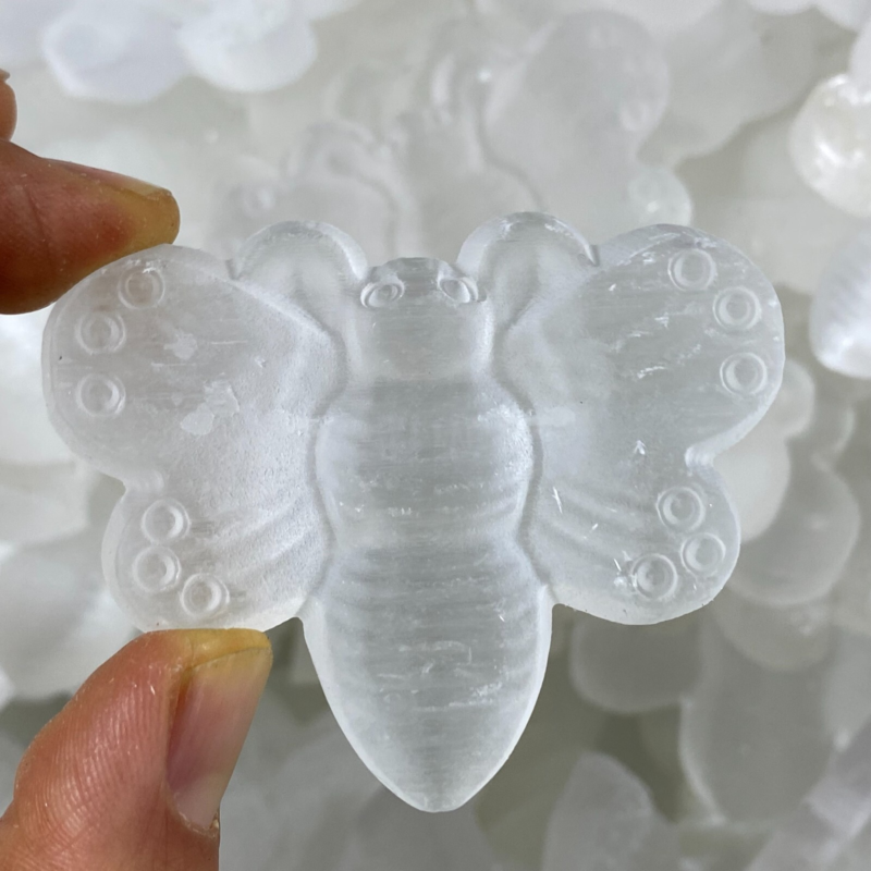Natural Gypsum Selenite bee Hand Carved Quartz Crystal Reiki healing 1PC