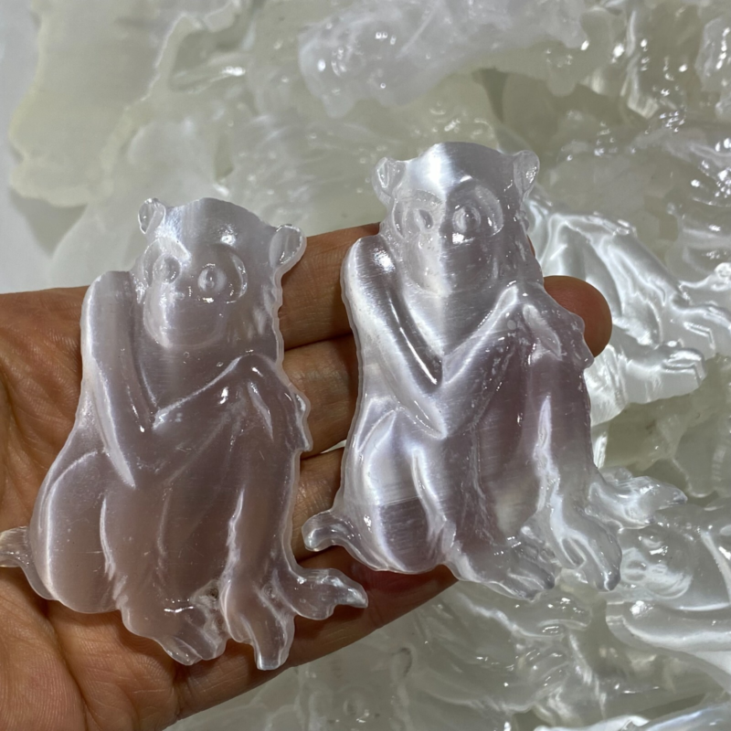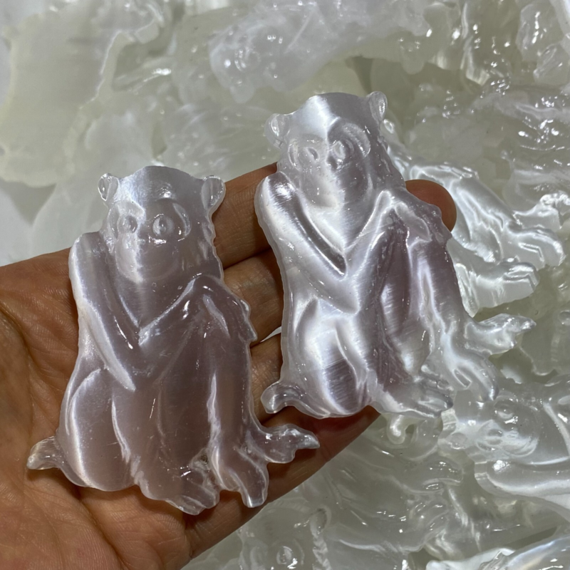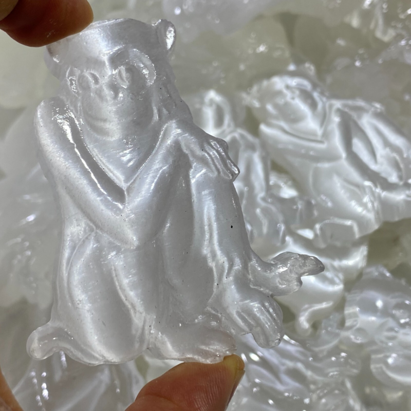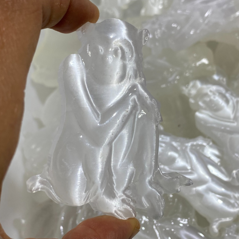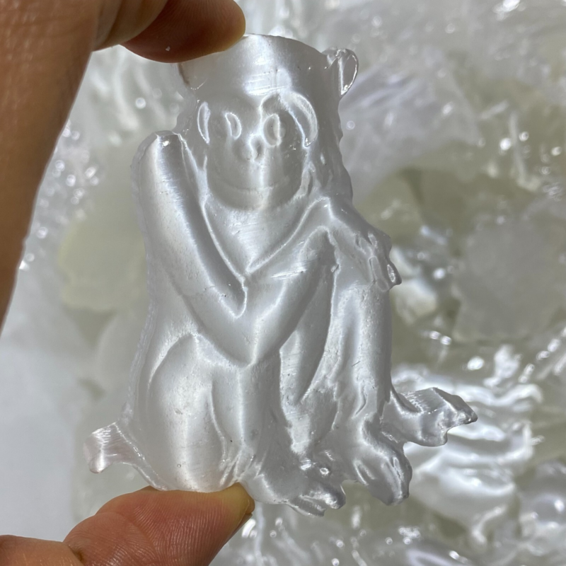 Natural Gypsum Selenite monkey Hand Carved Quartz Crystal Reiki healing 1PC