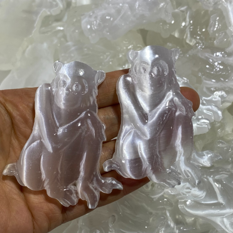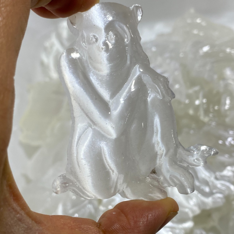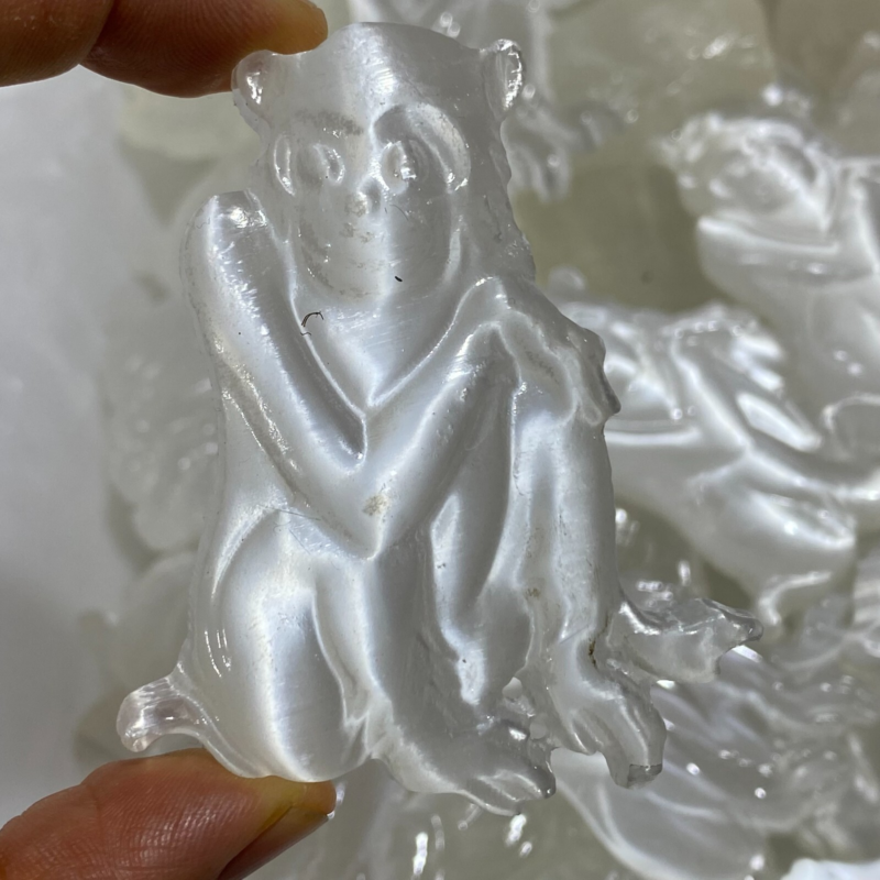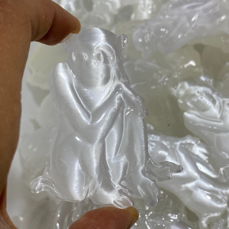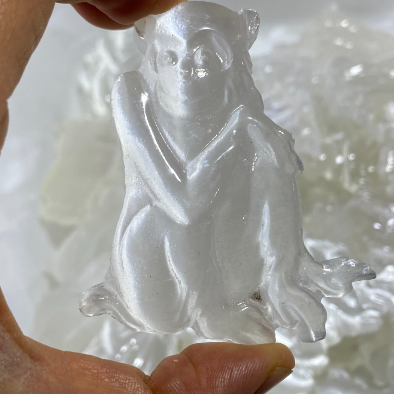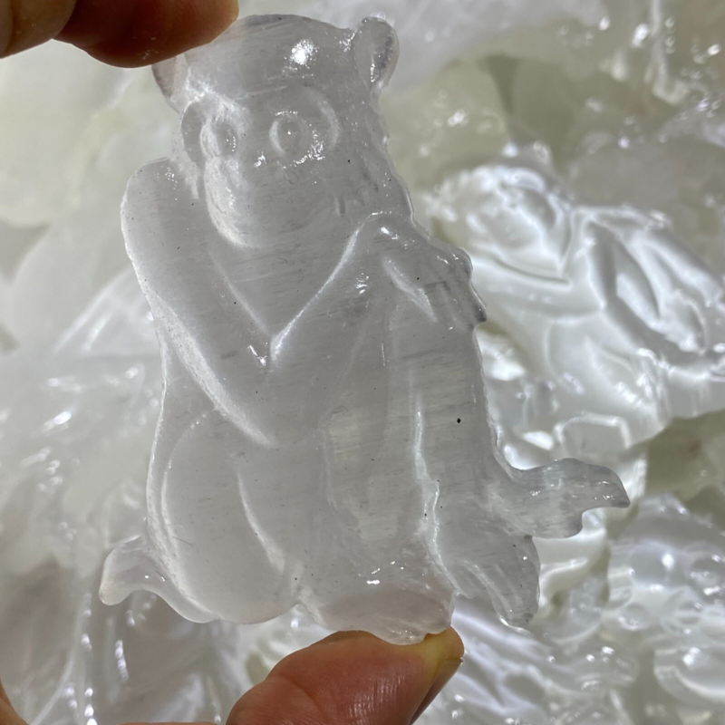 Natural Gypsum Selenite monkey Hand Carved Quartz Crystal Reiki healing 1PC