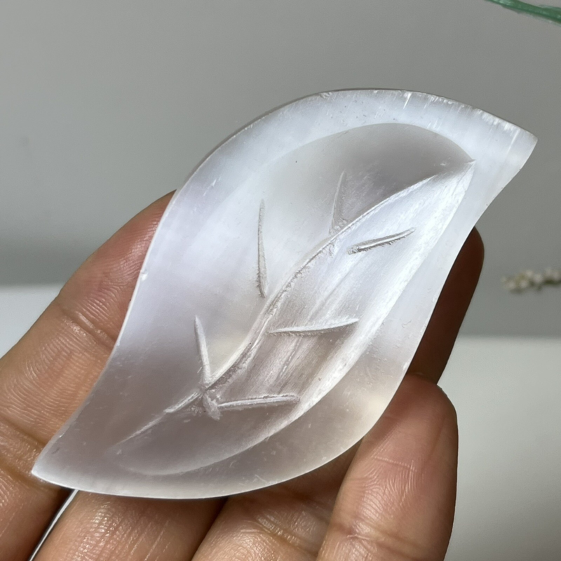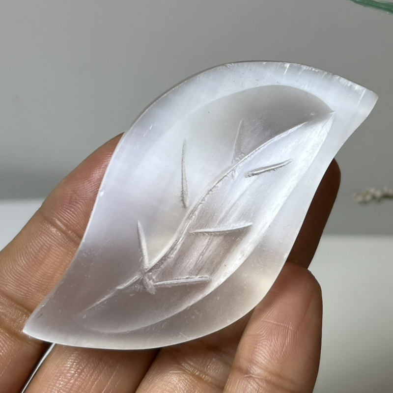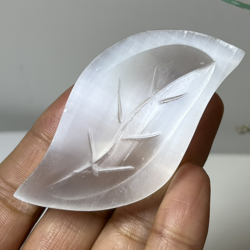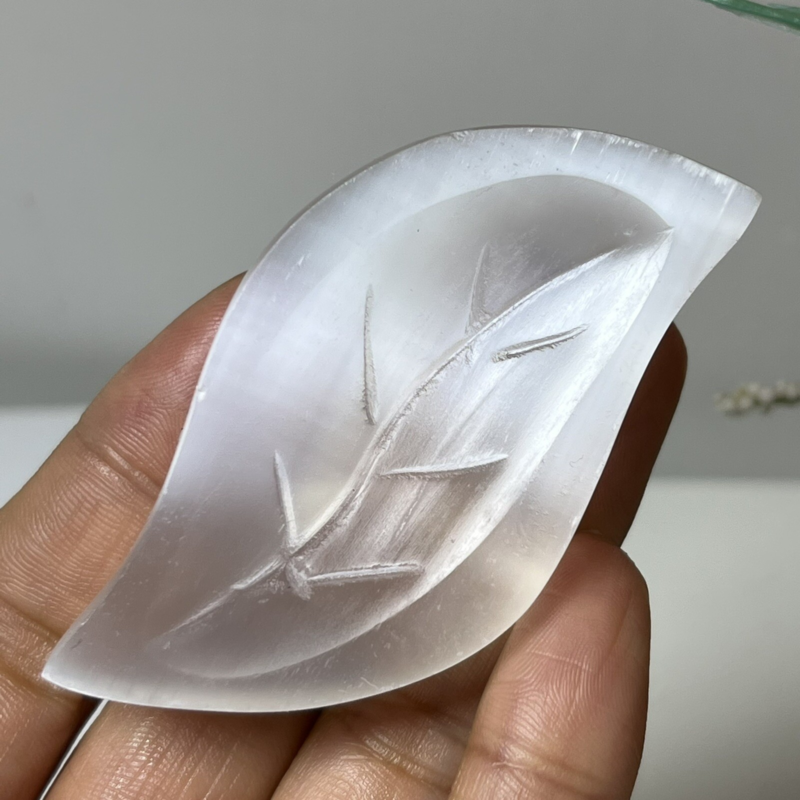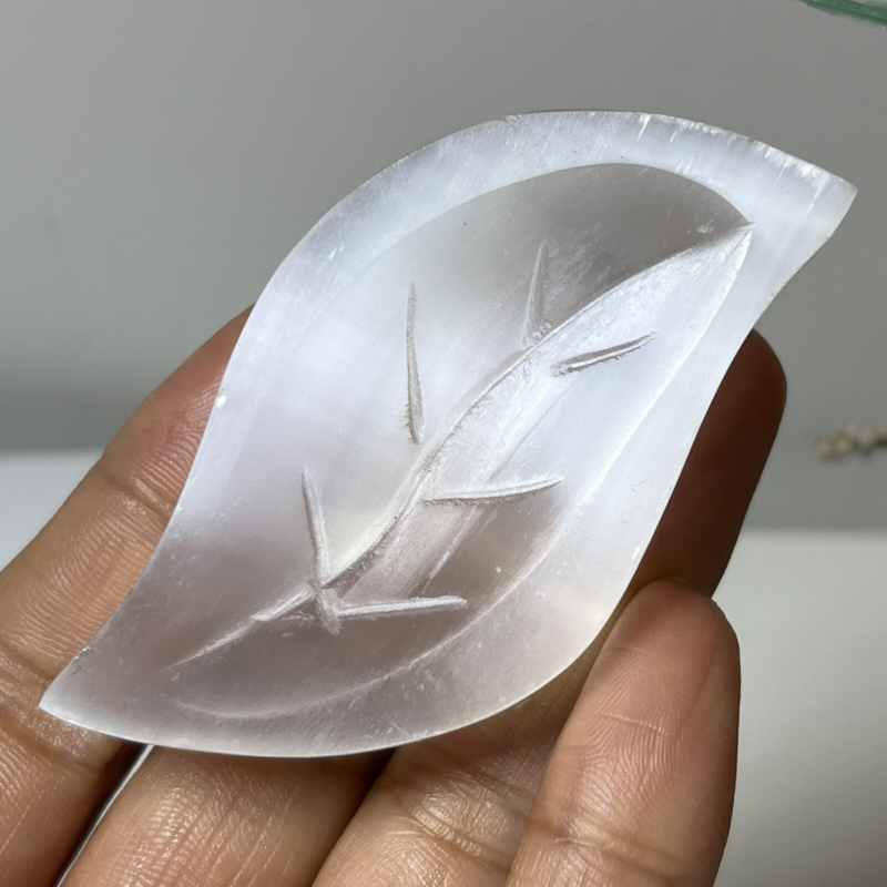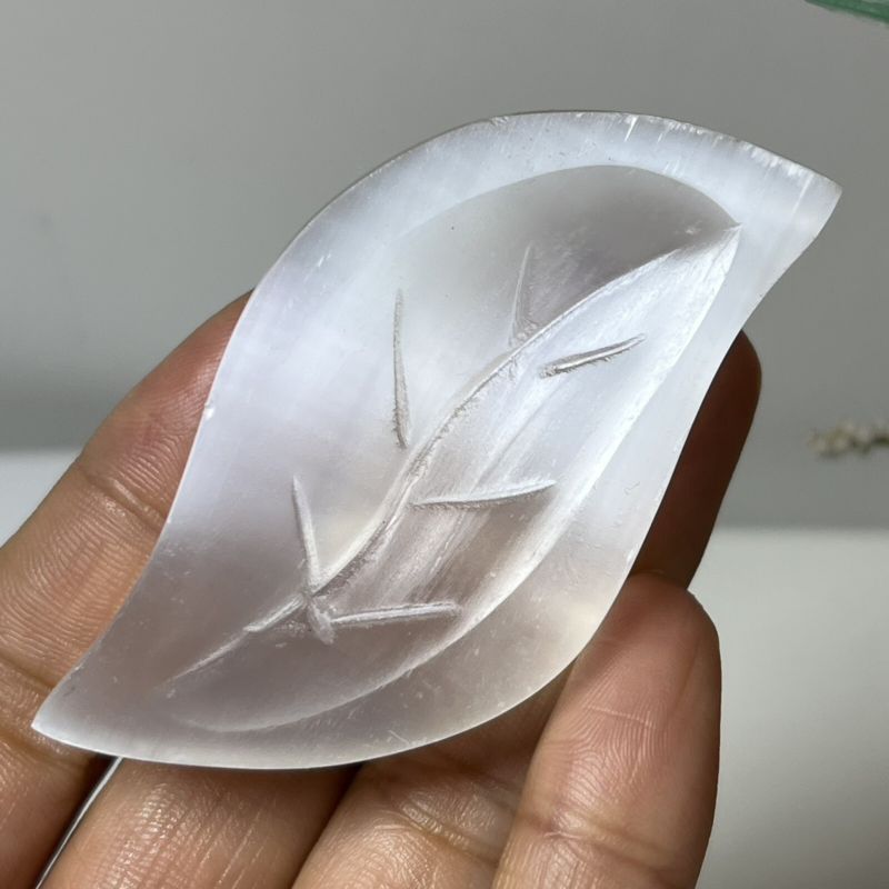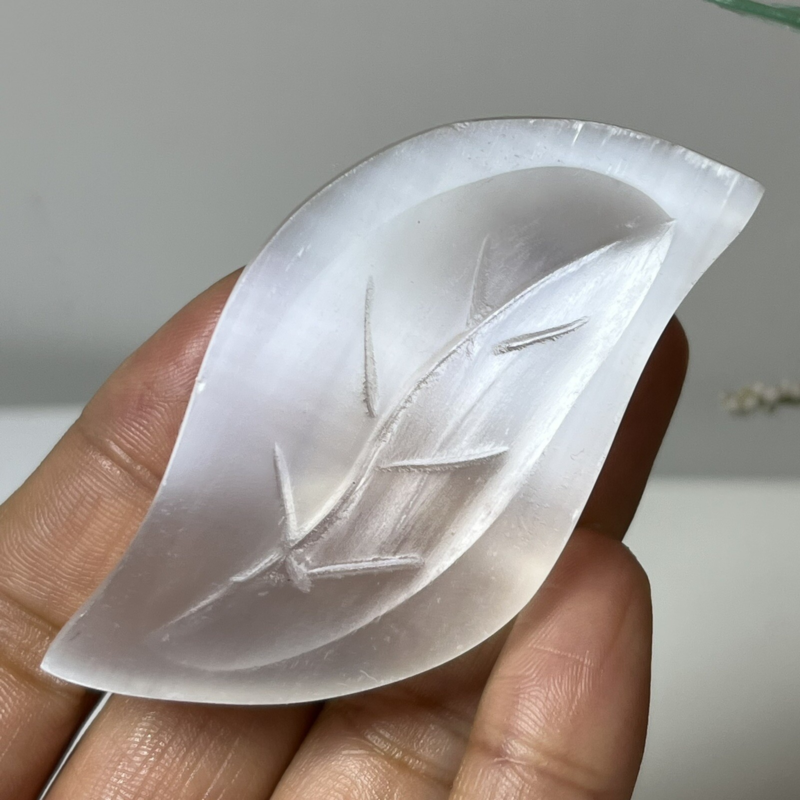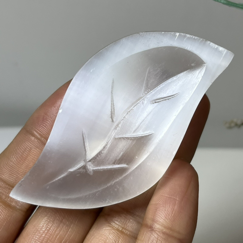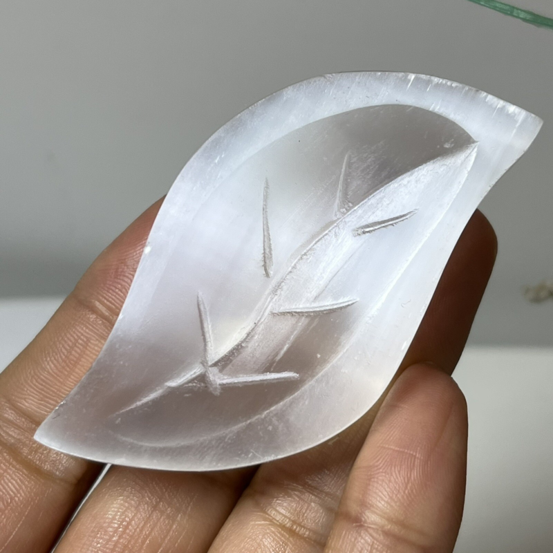 Natural Gypsum Selenite quartz leaves hand carved crystal healing ck20