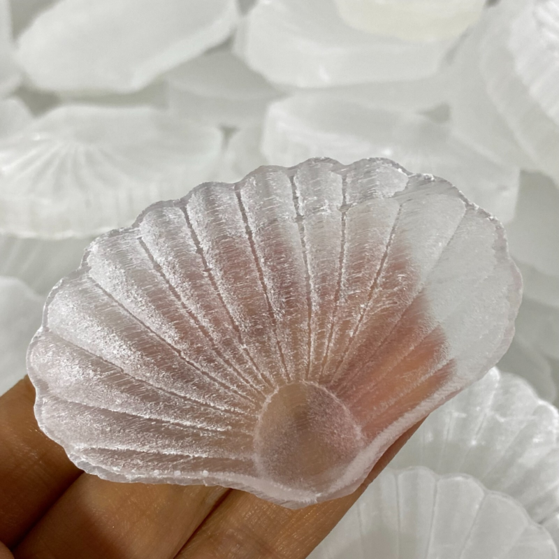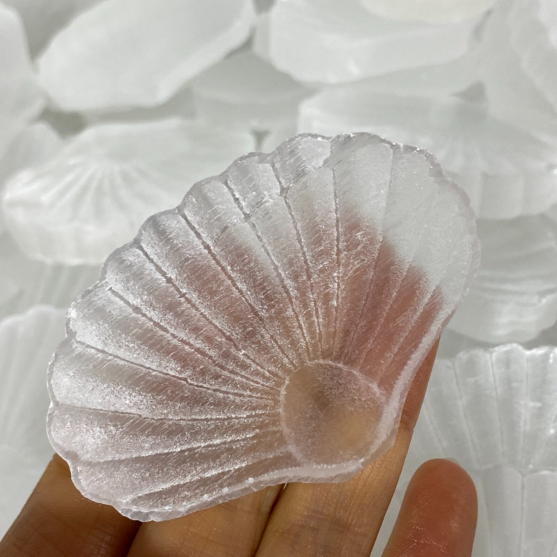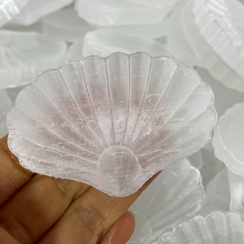 Natural Gypsum Selenite shell Hand Carved Quartz Crystal Reiki healing 1PC