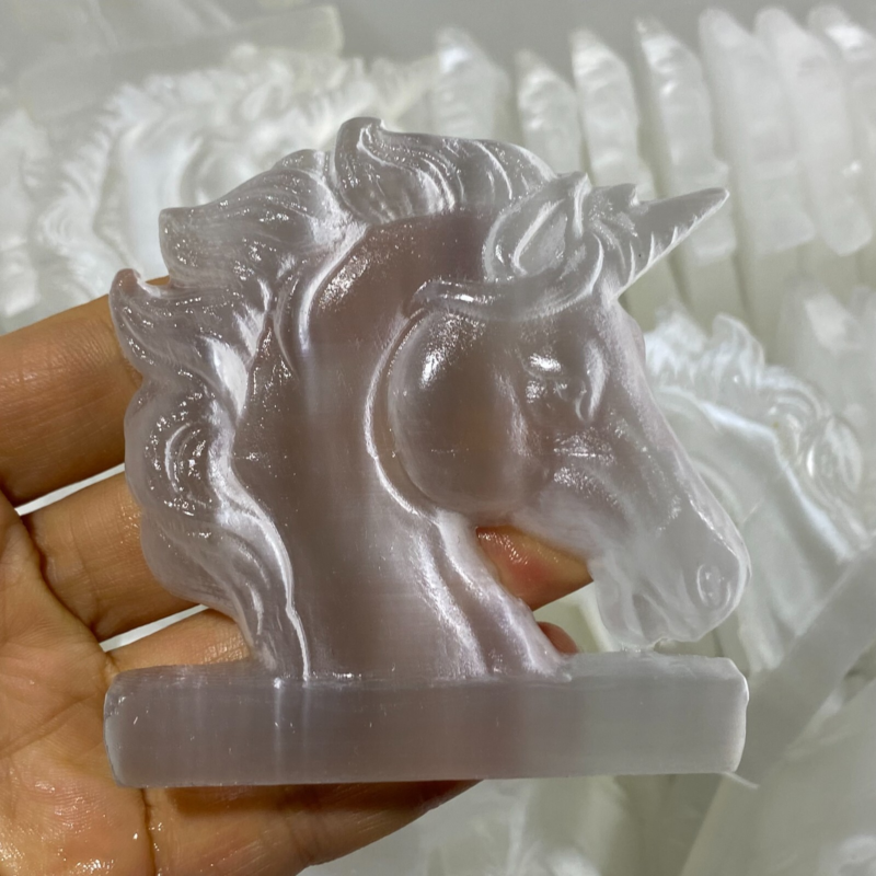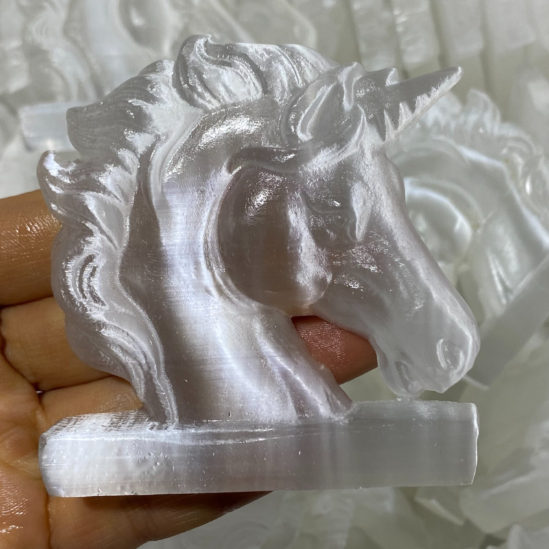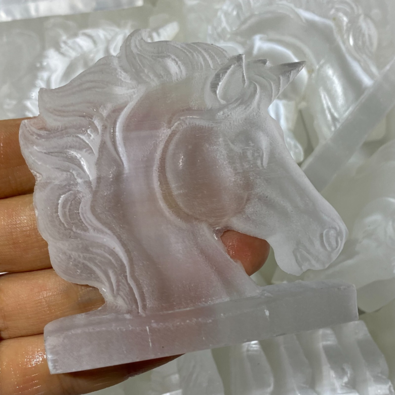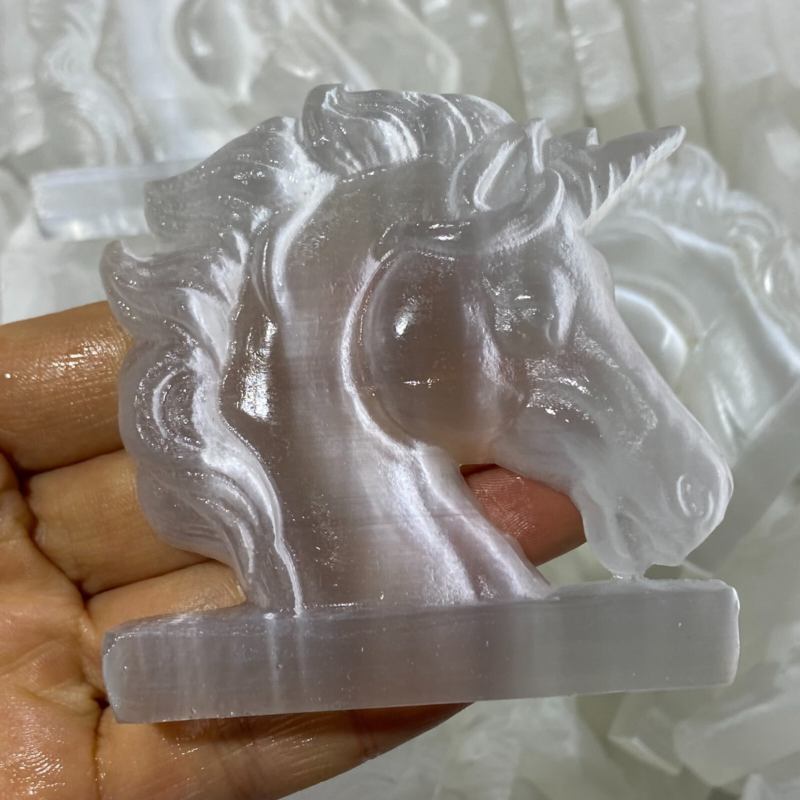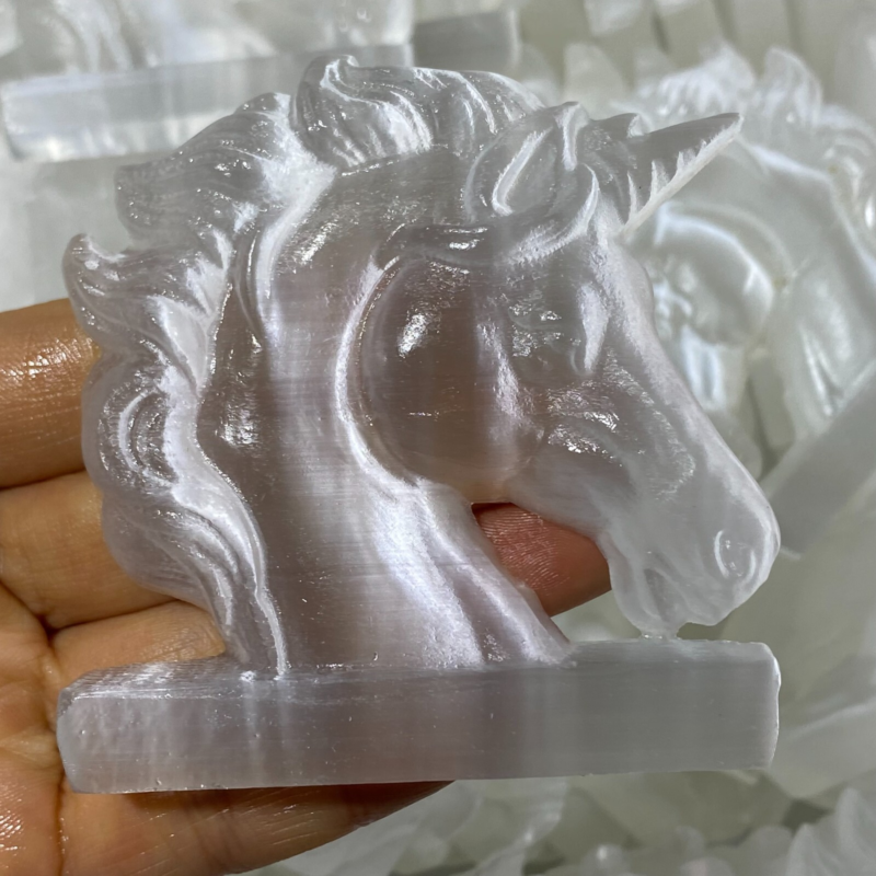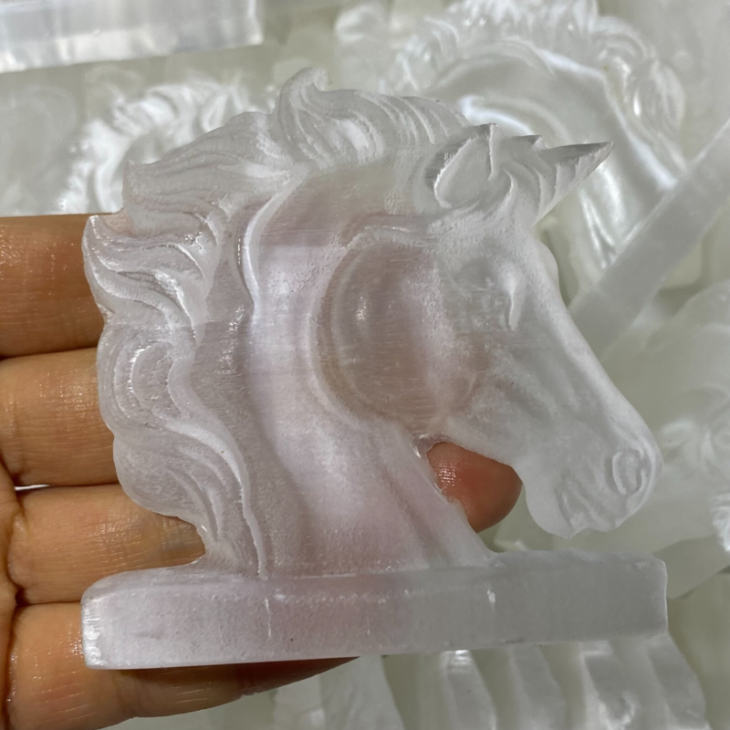 Natural Gypsum Selenite unicorn Hand Carved Quartz Crystal Reiki healing 1PC