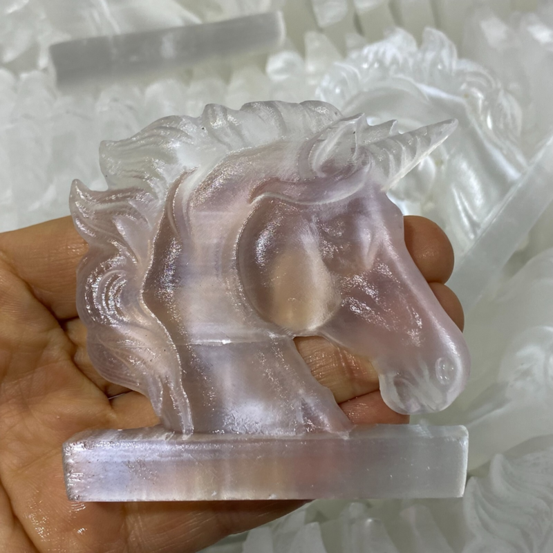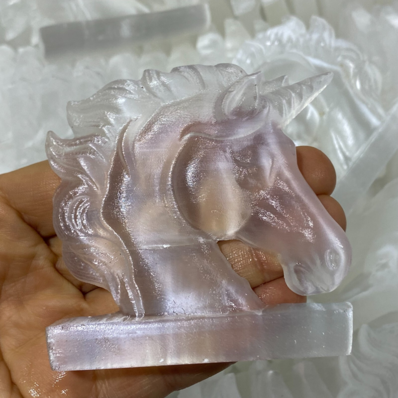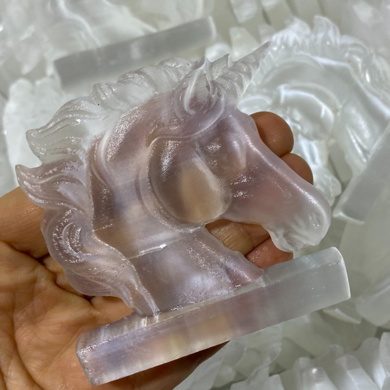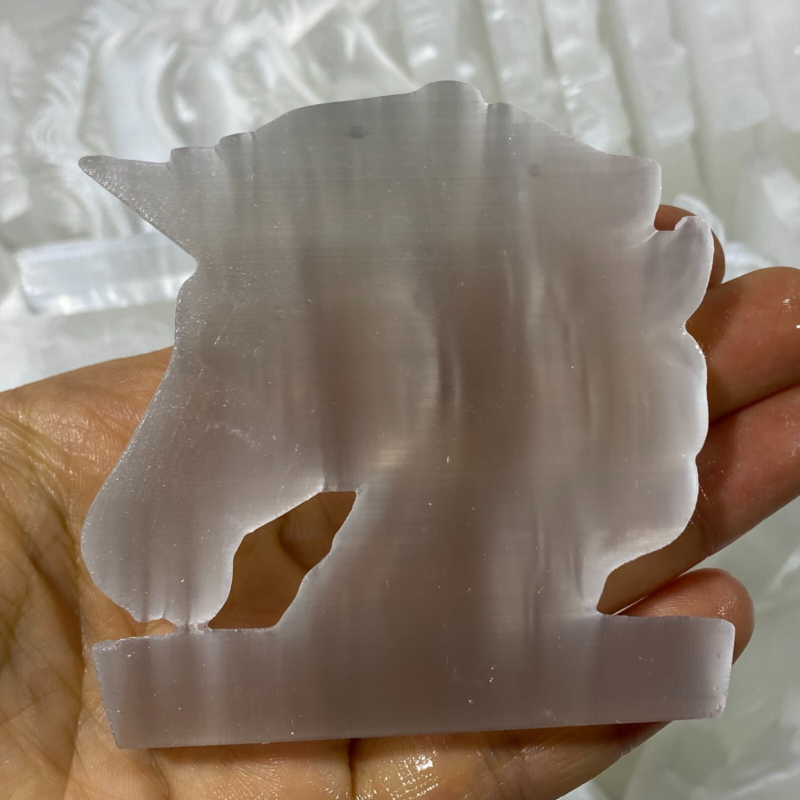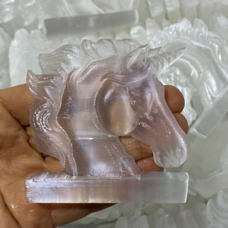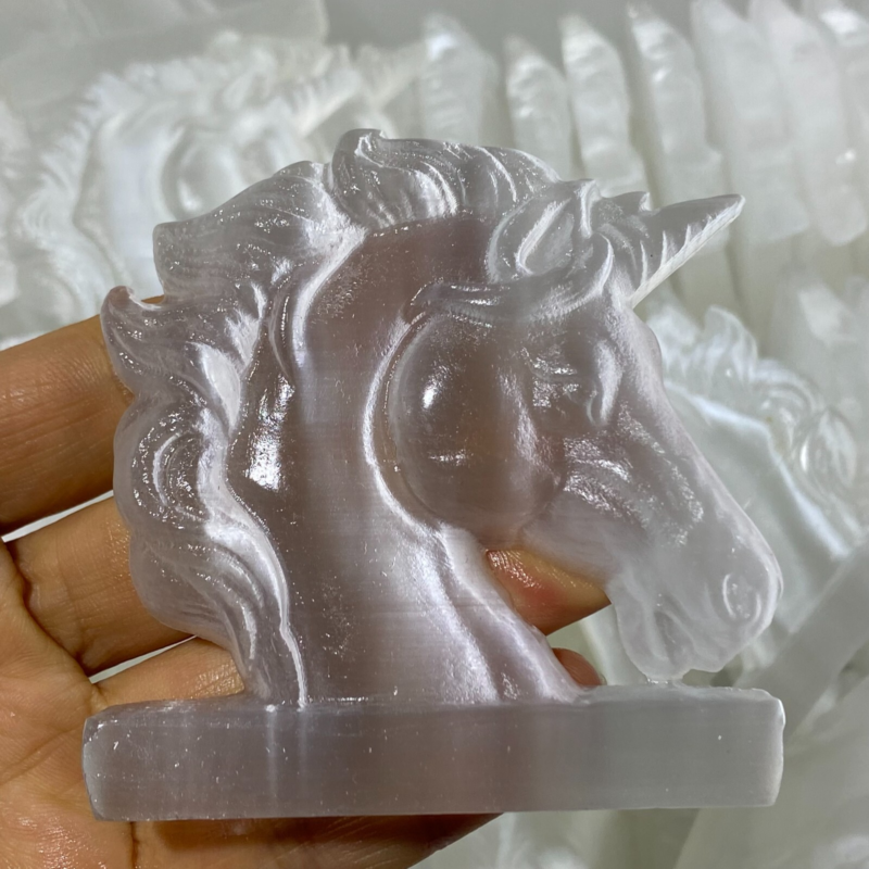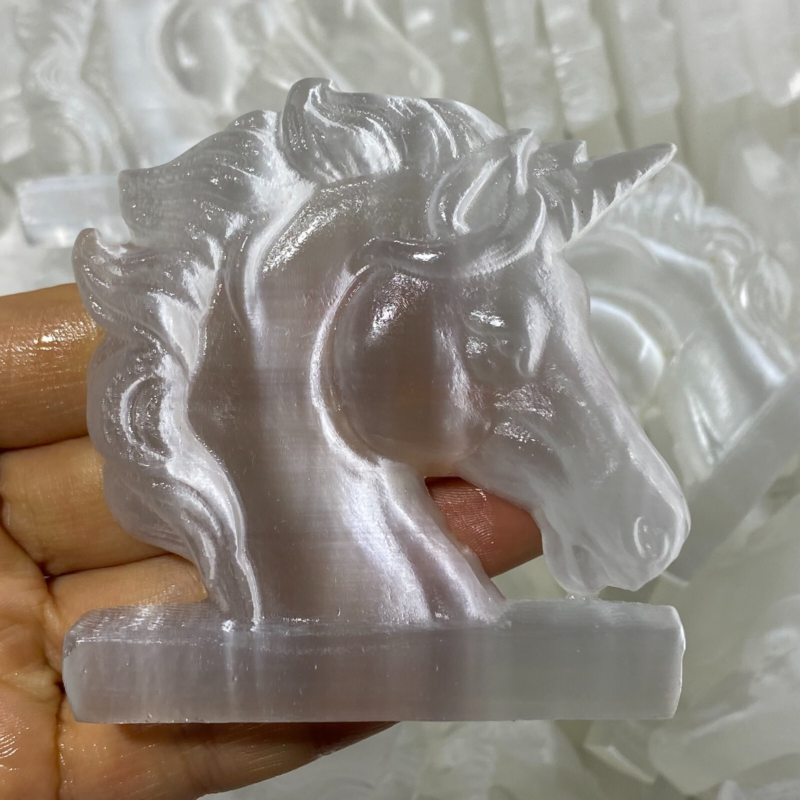 Natural Gypsum Selenite unicorn Hand Carved Quartz Crystal Reiki healing 1PC
