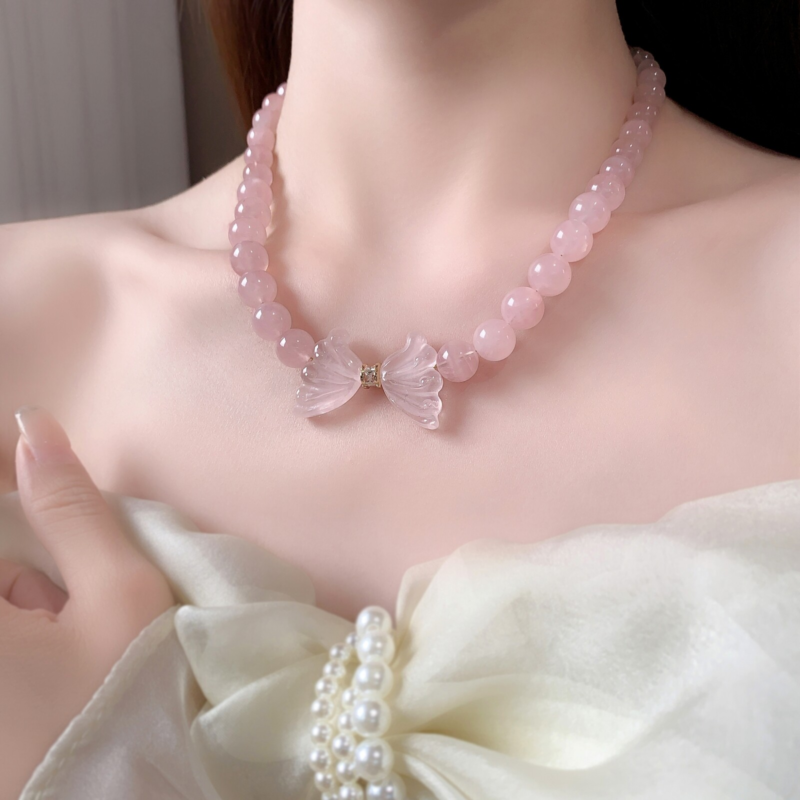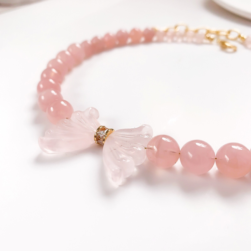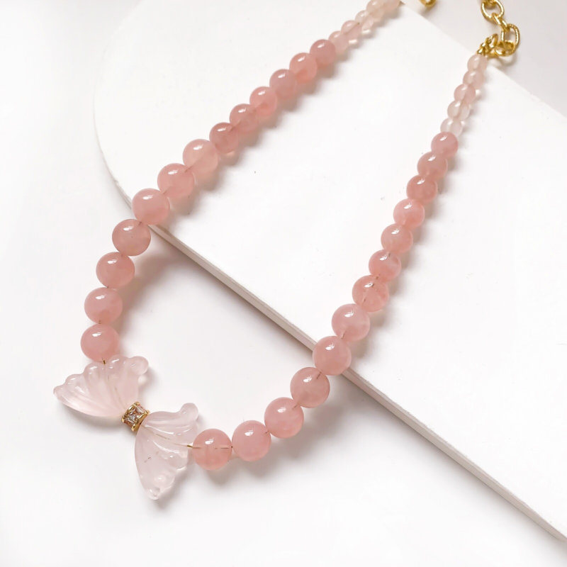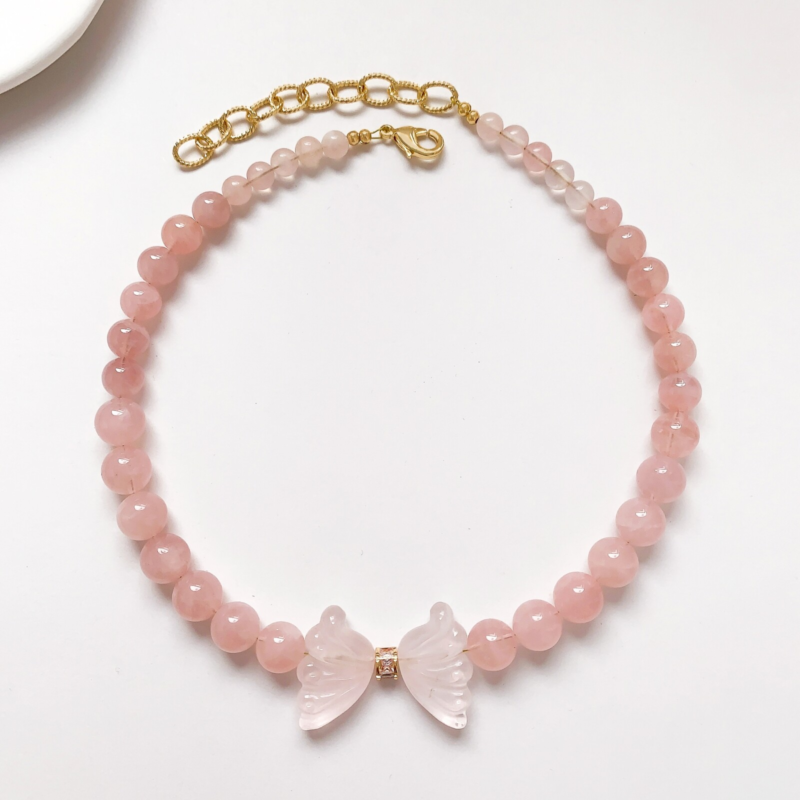 Natural Healing 10mm Rose Quartz Butterfly Pink Stone Love Choker Necklace