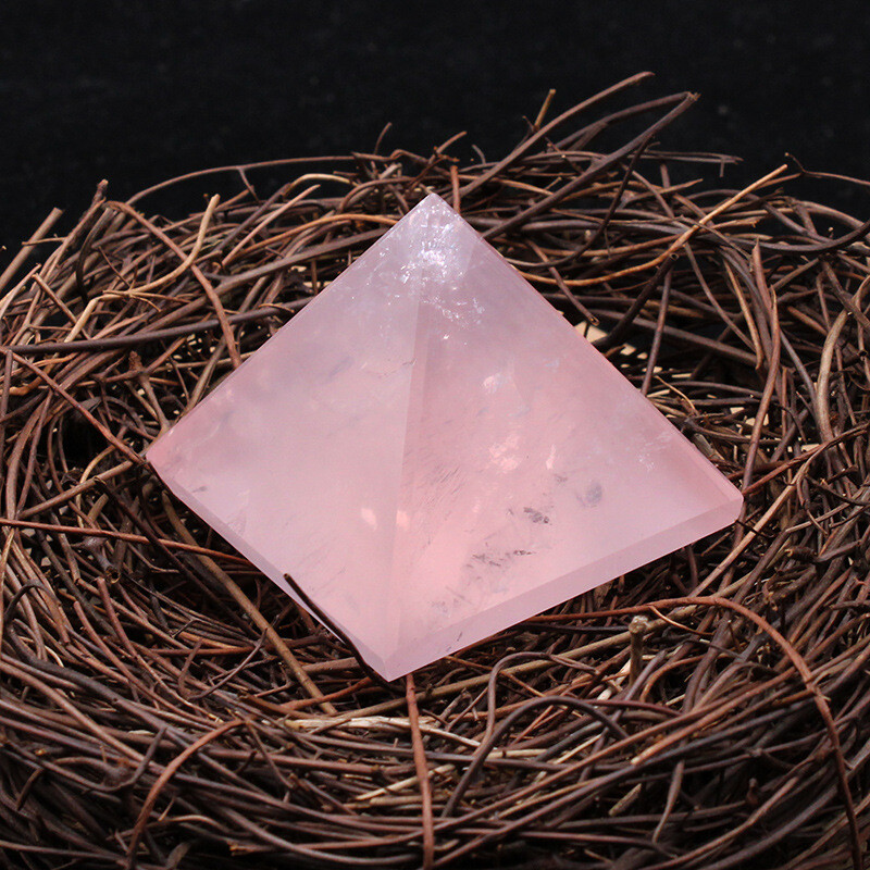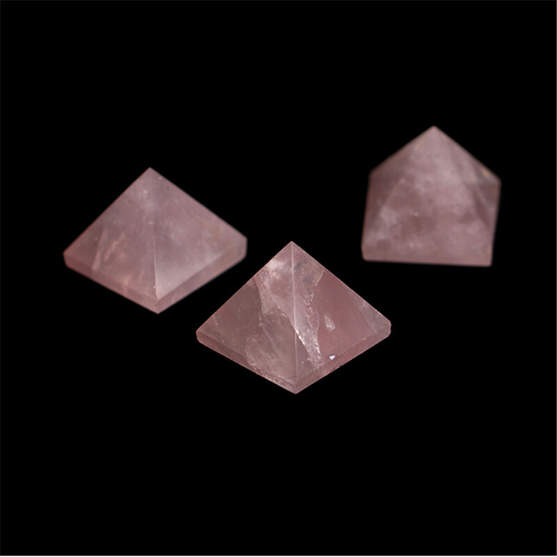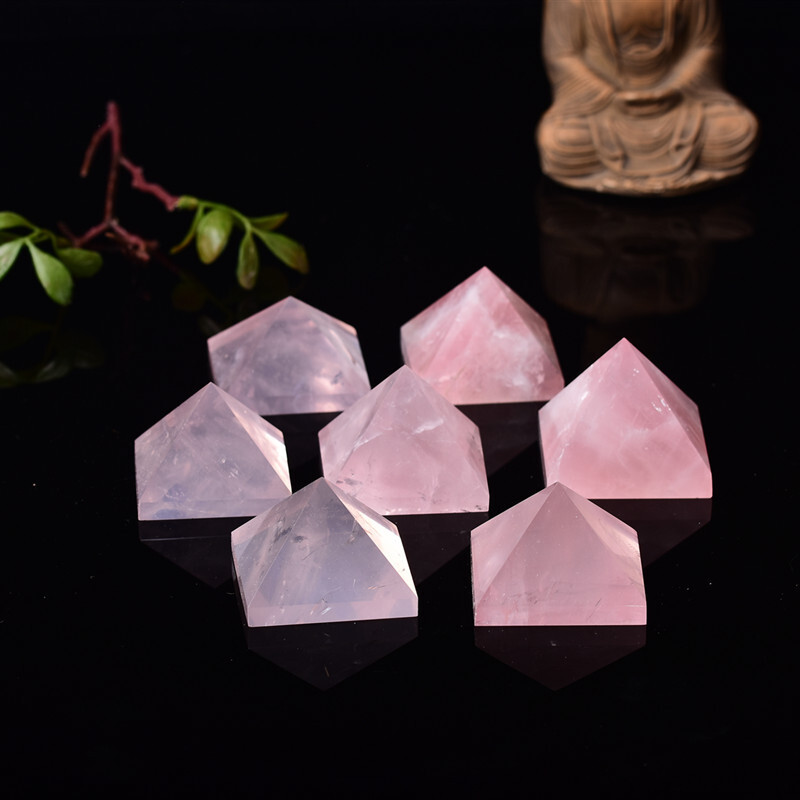 Natural Pink Rose Quartz Crystal Pyramid Healing Mineral Energy Gem Tower Decor