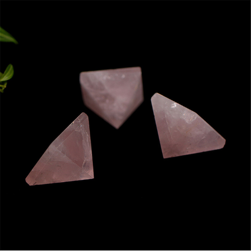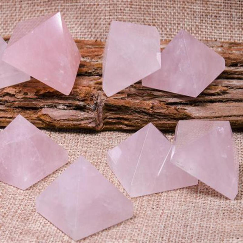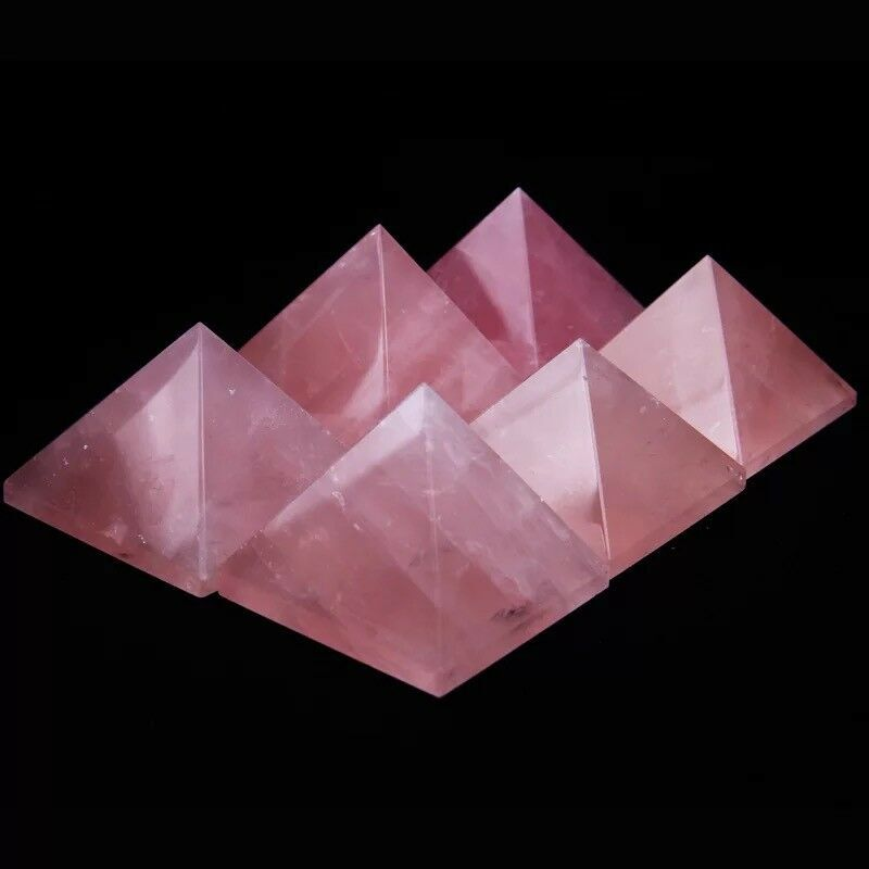 Natural Pink Rose Quartz Crystal Pyramid Healing Mineral Energy Gem Tower Decor