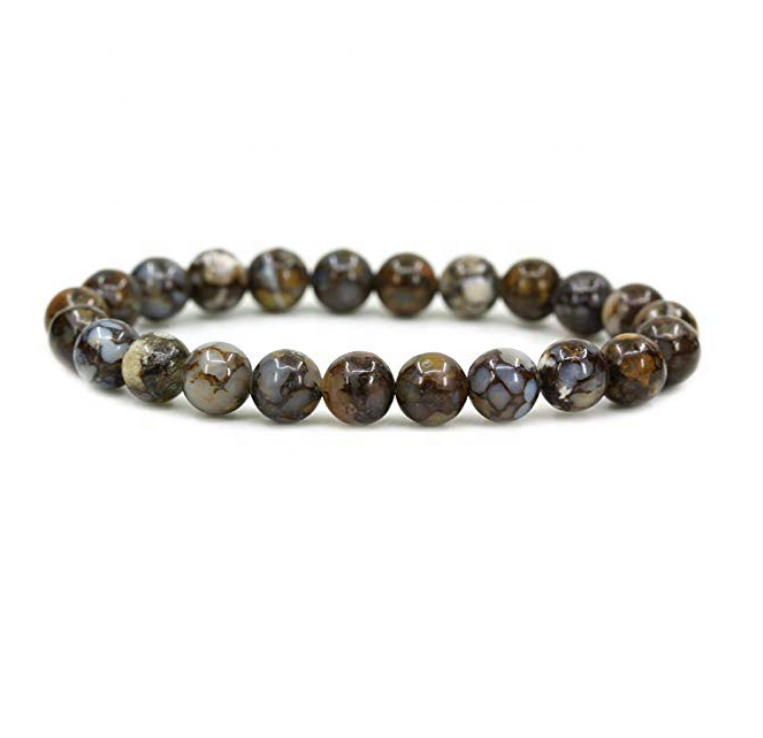 Natural Polish Fire Lace Opal Semi-Precious Gemstones Healing Crystal 8mm Round Beads Stretch Bracelet 7" Unisex