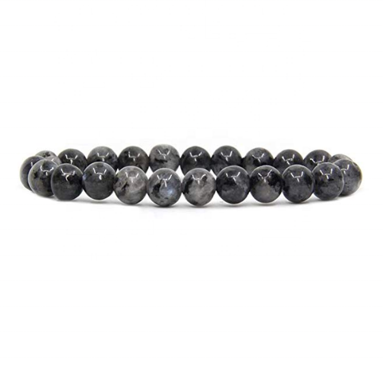 Natural Polish Larvikite Semi-Precious Gemstones Healing Crystal 8mm Round Beads Stretch Bracelet 7" Unisex