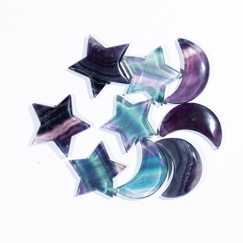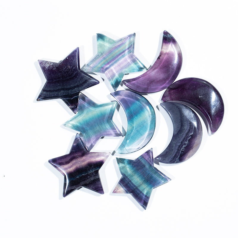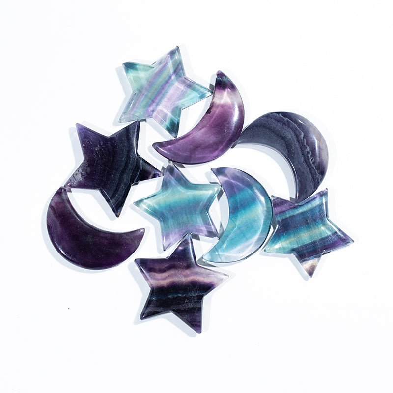 Rainbow fluorite star moon shape crystal star