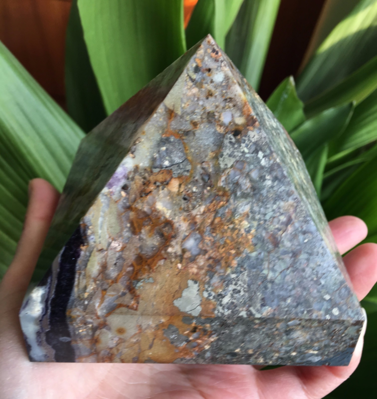 Natural tourmaline& fluorite&chalcopyrite& amethyst Crystal Gem Stone Pyramid