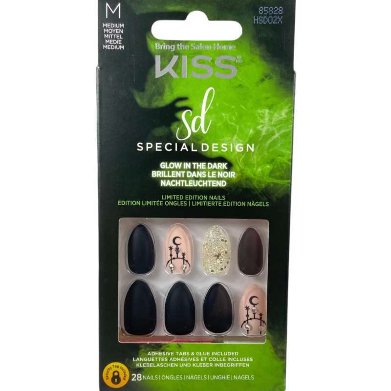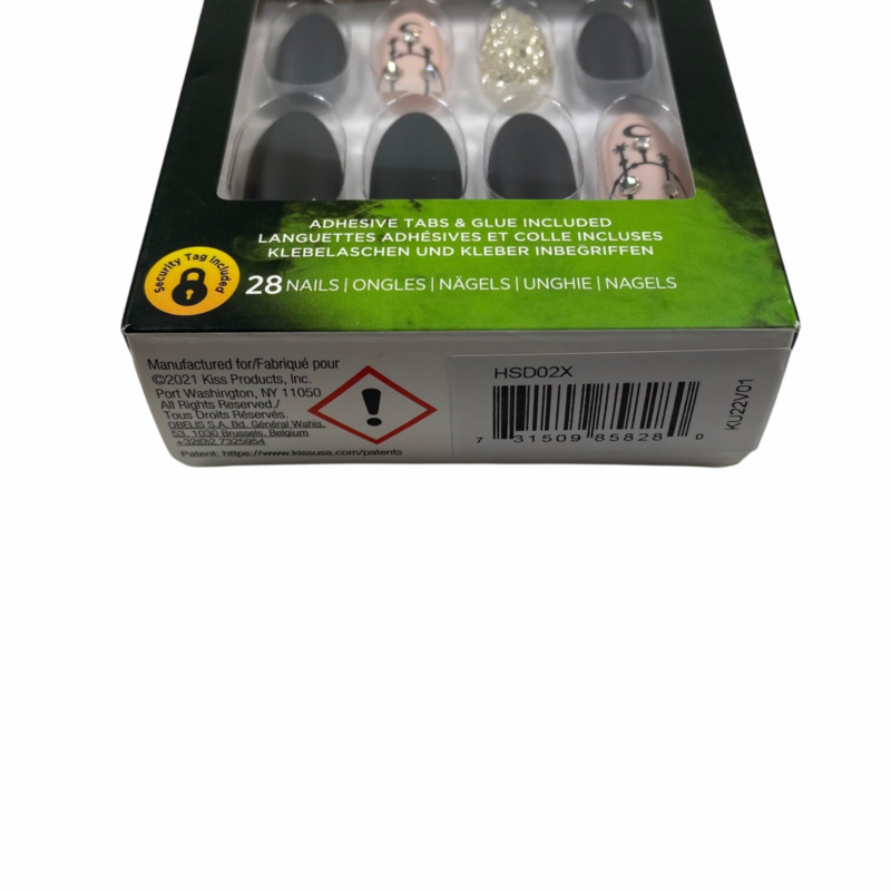 NEW Kiss Nails Halloween Glue Press Manicure Medium Almond Black Dream Catcher