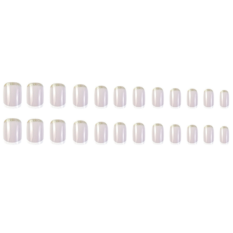 Nude Color Glitter False Nail Medium Square Press on Nails for Nail Art 24pcs