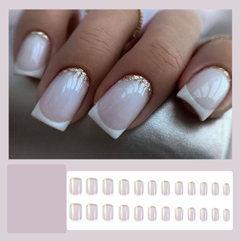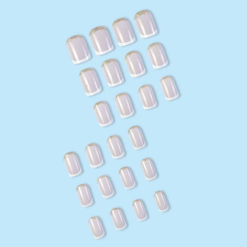 Nude Color Glitter False Nail Medium Square Press on Nails for Nail Art 24pcs